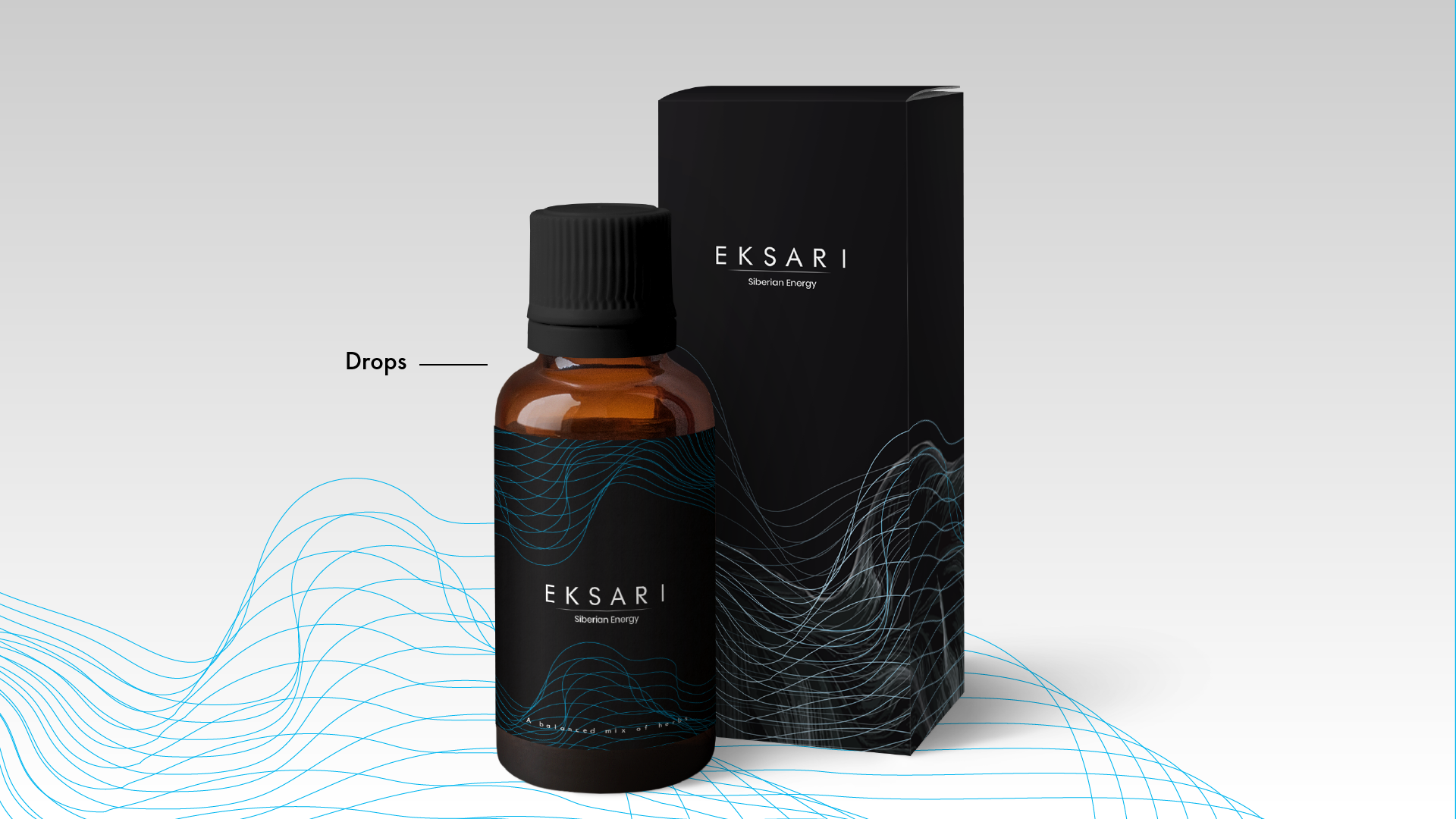 Obalový design zázračného doplnku stravy s názvom Eksari. Snažila som sa o vytvorenie chladne pôsobiaceho designu ktorý evokuje Sibír. Design je postavený na topografických čiarach zo Sibíra, ktoré znázorňujú čistú energiu.