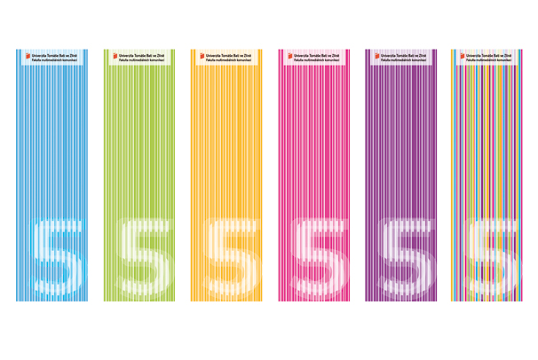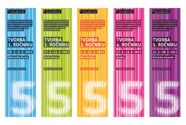Mým záměrem bylo vymyslet co nejjednodušší vizuální styl s motivy opartové pětky. Celý vizuální styl jsem založila na jednoduchých barvách a jejích odstínech, které se dají seskupit v jeden vícebarevný plakát. Jako další reklamní předměty a součást propagace jsem zvolila odznaky a samolepky.