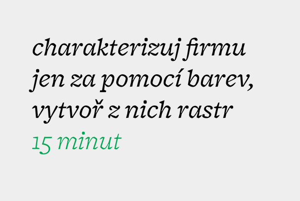 Časově omezené cvičení bez předešlé znalosti zadání. Záměrem byla shaha o potlačení perfekcionismu, využití naléhavého deadlinu jakožto efektivního nástroje.