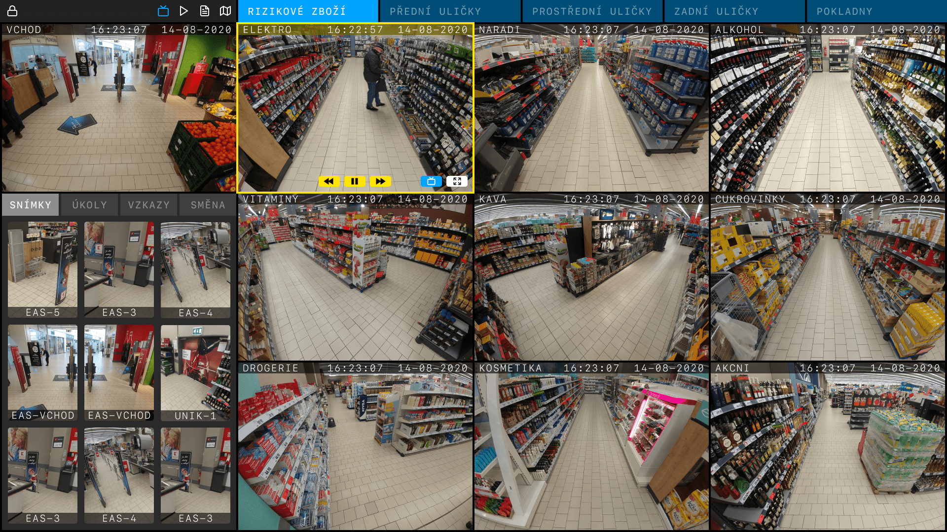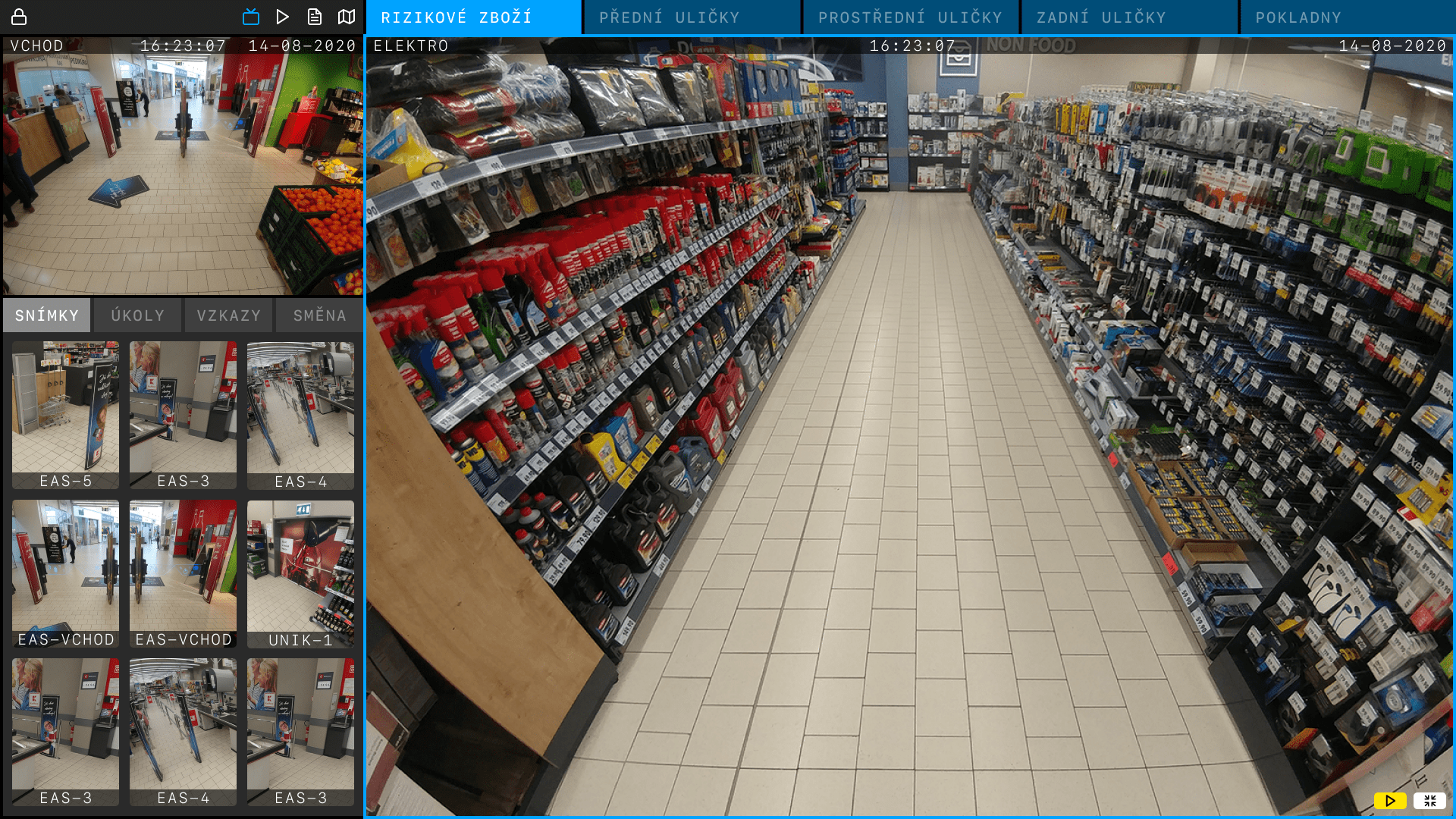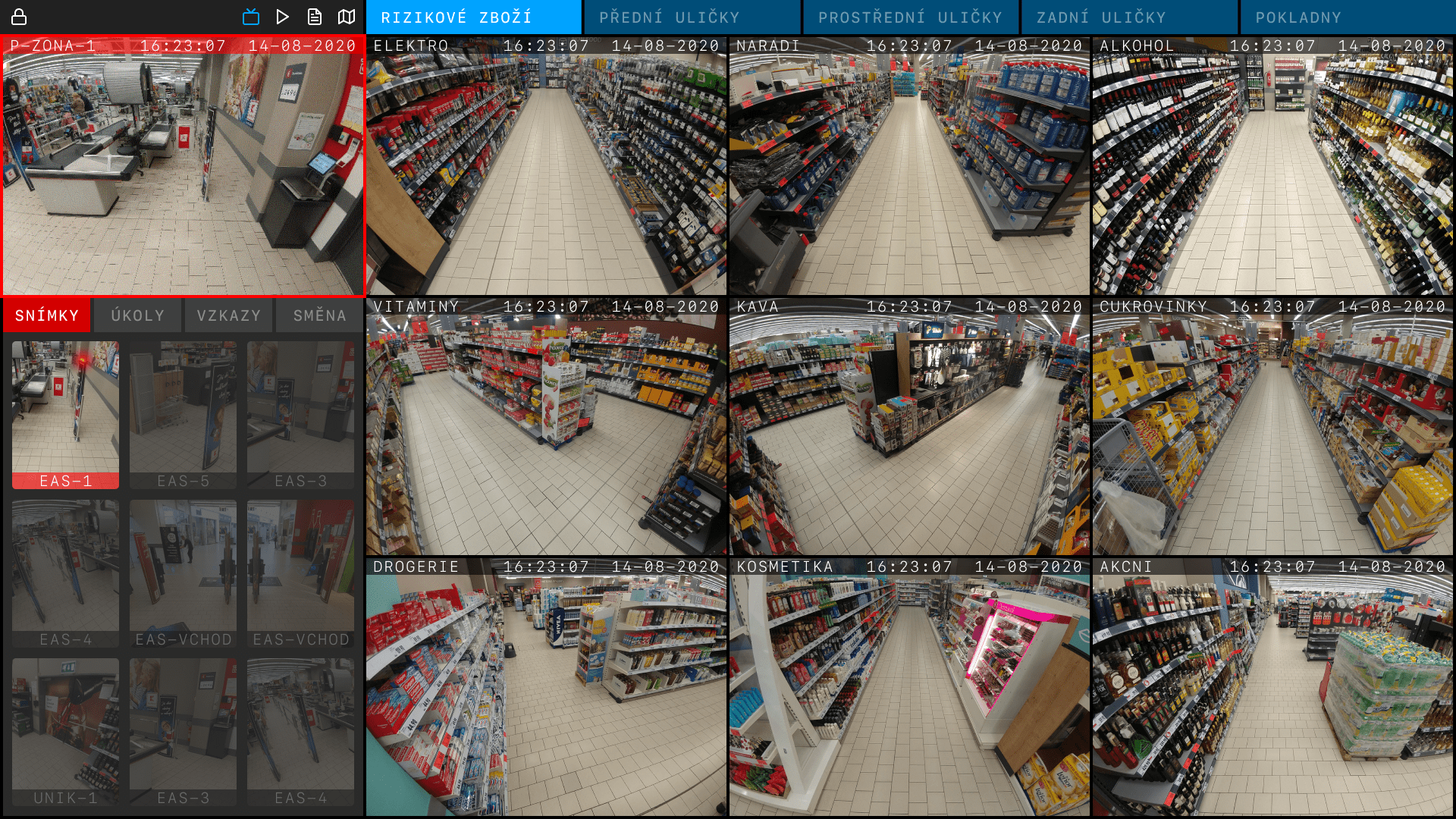 Bezpečnostní systém, který je určen pro nasazení v obchodních řetězcích. Je rozdělen do čtyř pracovních režimů, zahrnuje elektronickou strážní knihu, databázi pachatelů, a další užitečné funkce, které mají usnadnit a urychlit práci strážného. Při tvorbě jsem vycházel z vlastních poznatků a zkušeností, protože jsem jako strážný pracoval ve třech různých prodejnách a s mnoha technickými systémy.