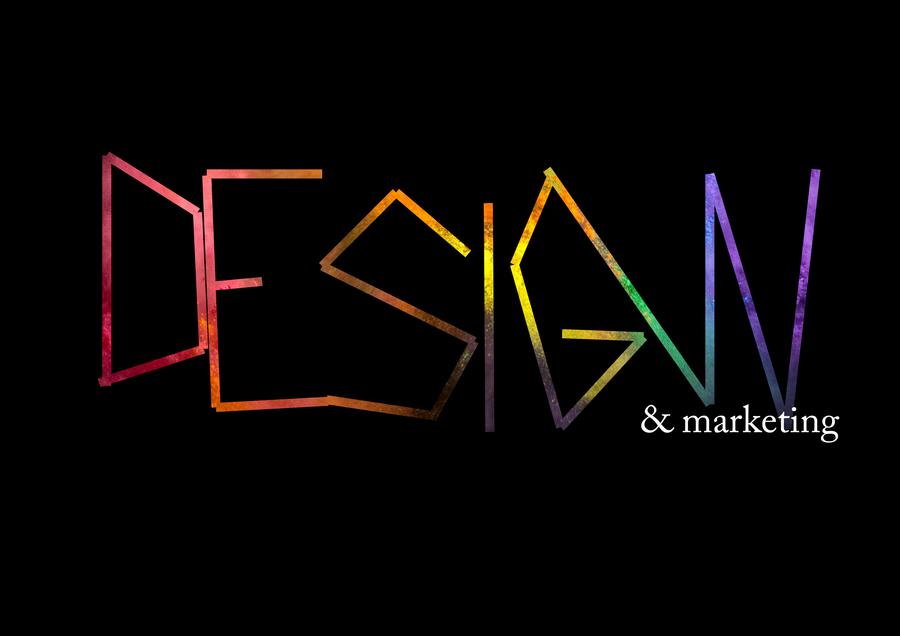 Použití barevného pozadí, následně páskou vytvoření písmen a přebarvení černou. Když se páska odlepí, vznikne barevný nápis "Design"