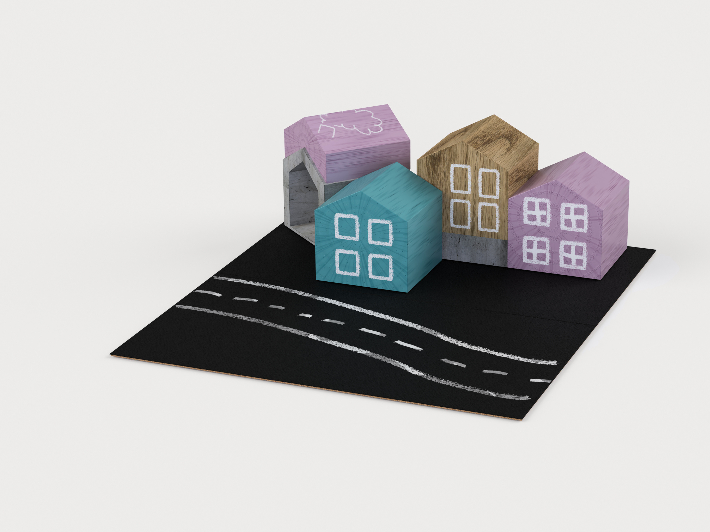 Dětská kreativní stavebnice BLOCKY umožňuje dětem vytvořit si vesnici nebo město podle jejich představ. Díky povrchové úpravě mohou být dřevěné nebo betonové kostky i podložka vyrobená z tabulové fólie pokresleny křídou nebo křídovým fixem. Povrch je lehce omyvatelný a ke smytí křídy stačí vlhký hadřík.Tato stavebnive je navržena tak, aby rozvíjela představivost, kreativitu a aby přinášela radost.
