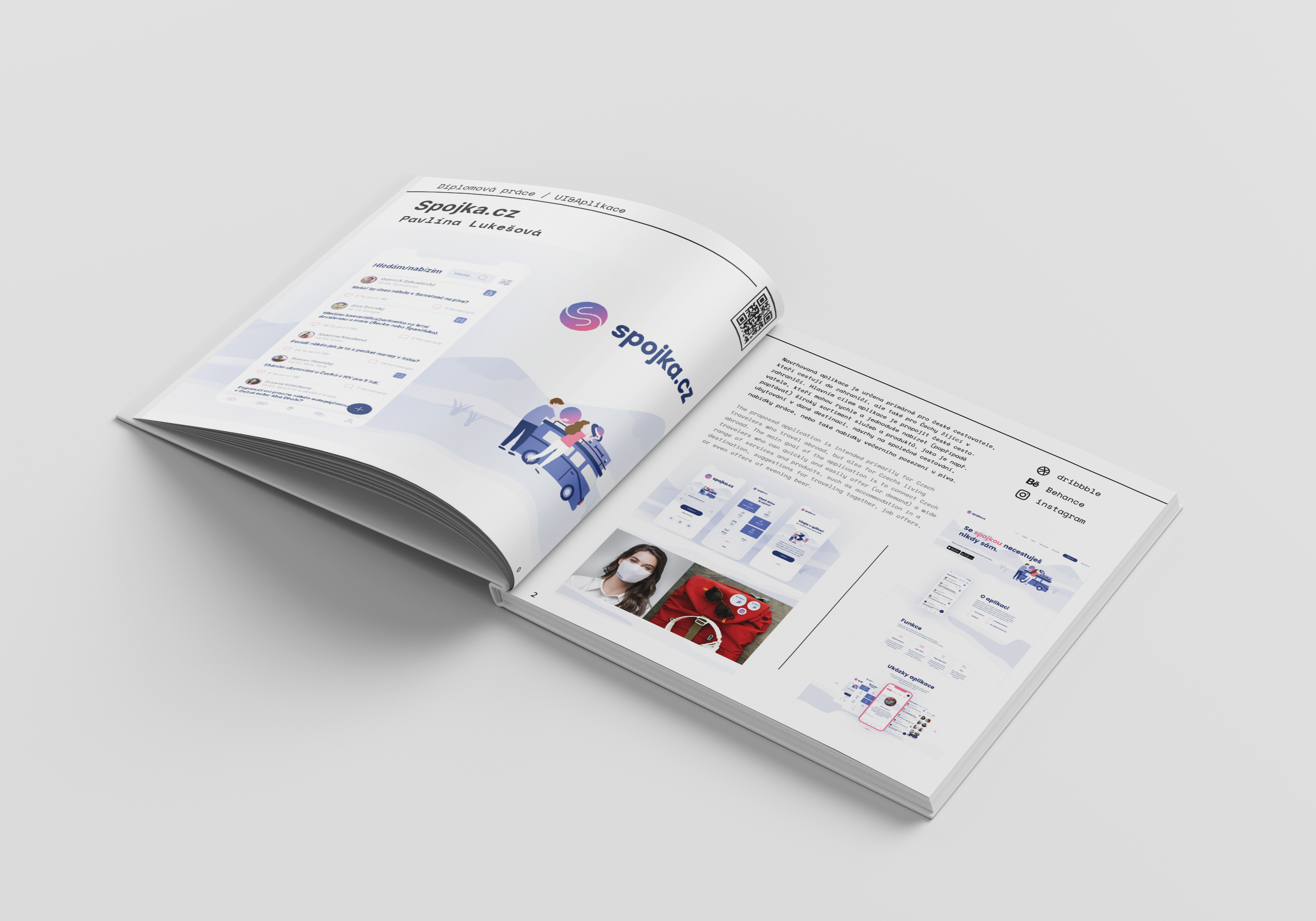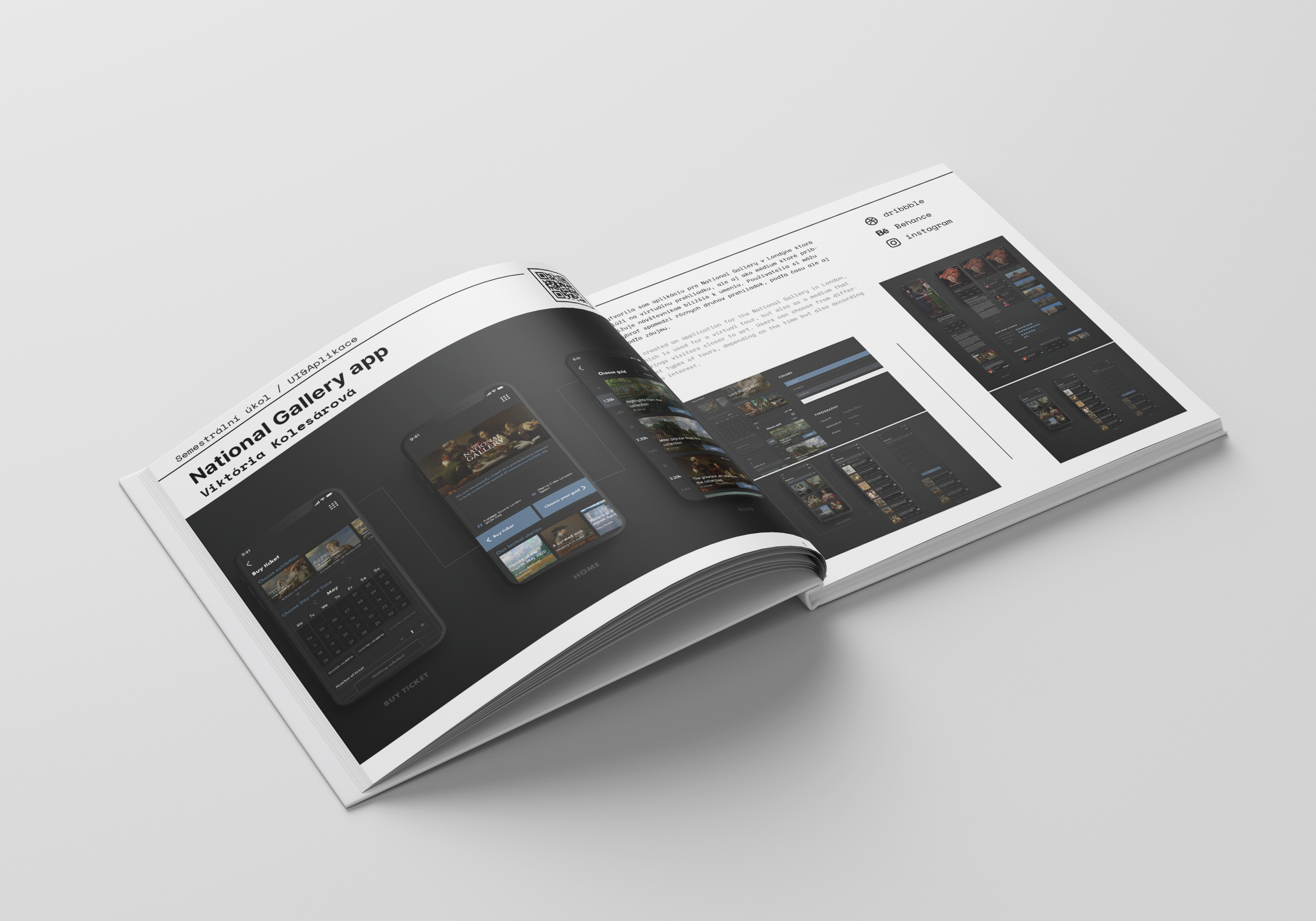 Brožúra v tlmených farbách má kontrastovať s rgb spektrom ktoré má výrazné a sýte farby. Layout je utvorený z niekoľkých druhov šablón, ktoré je možné použiť na projekty s rôznym rozsahom a množstvom obrazových výstupov. Stránky niektorých projektov obsahujú QR kód, ktorý odkazuje buď na prototyp práce, alebo spúšťa jej prípadné ar funkcie.