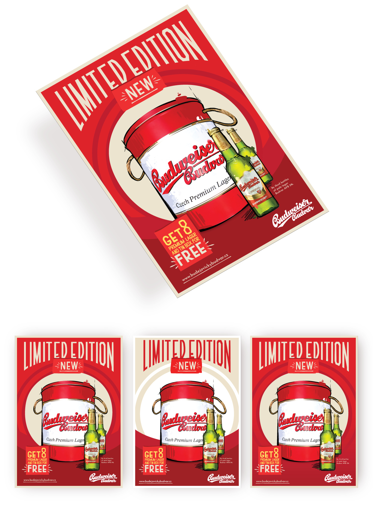 Pre súťaž Popai - Budějovický Budvar sme mali vytvoriť predstavenie ich nového atraktívneho multipacku. Vytvorila som sériu inzerátov, v rôznych farebných prevedeniach. Inšpirovala som sa retro štýlom, kde som do pozadia zakomponovala pohľad na multipack zhora.