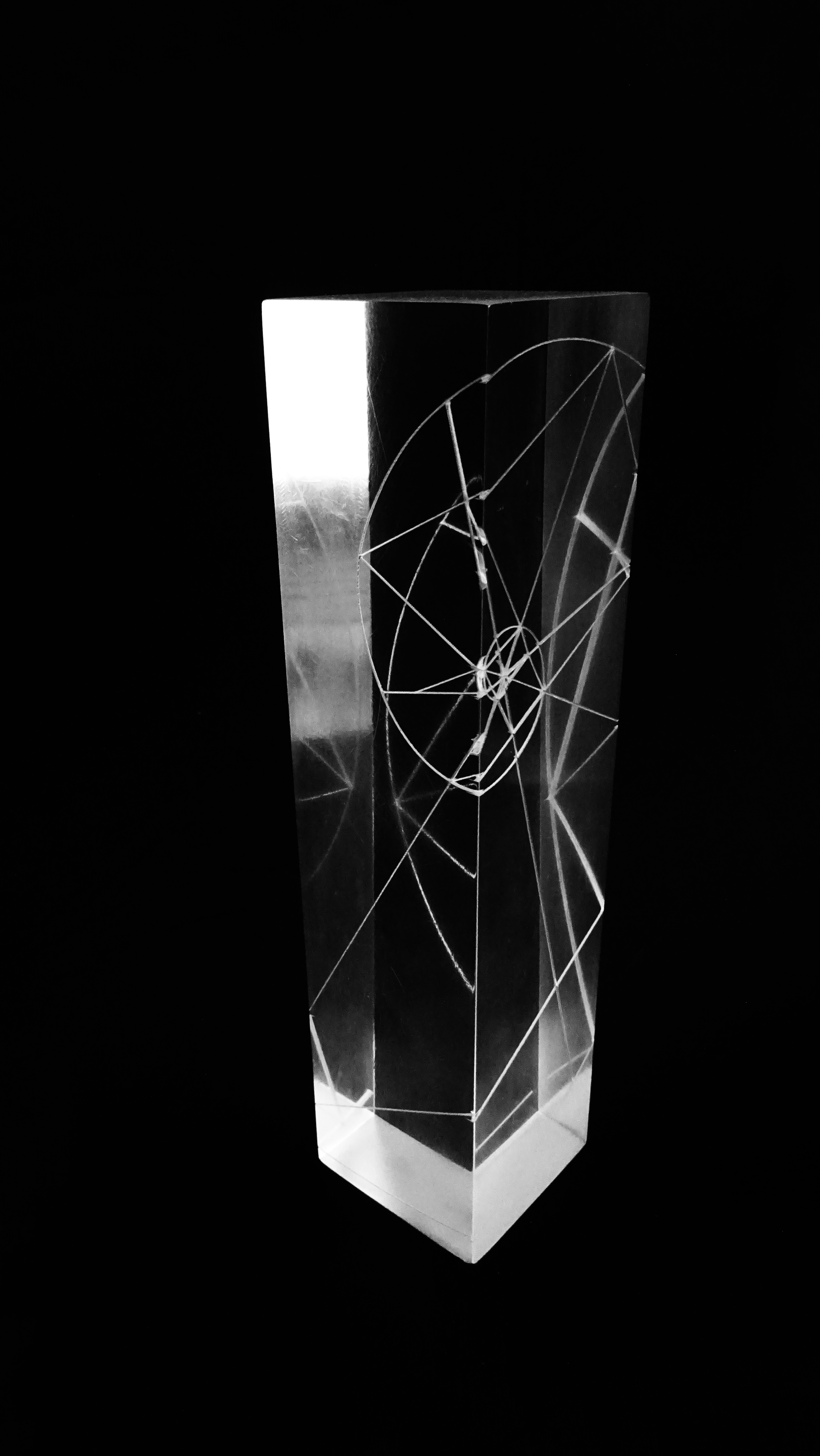 Cena je vytvořena z polymethylmetakrylátu. Velikost hranolu se odvíjí od pravidla logaritmické spirály, kterou popsal pan profesor František Crhák ve své knize, kde se snažil najít spojitost mezi přírodními formami, geometrií a designem.