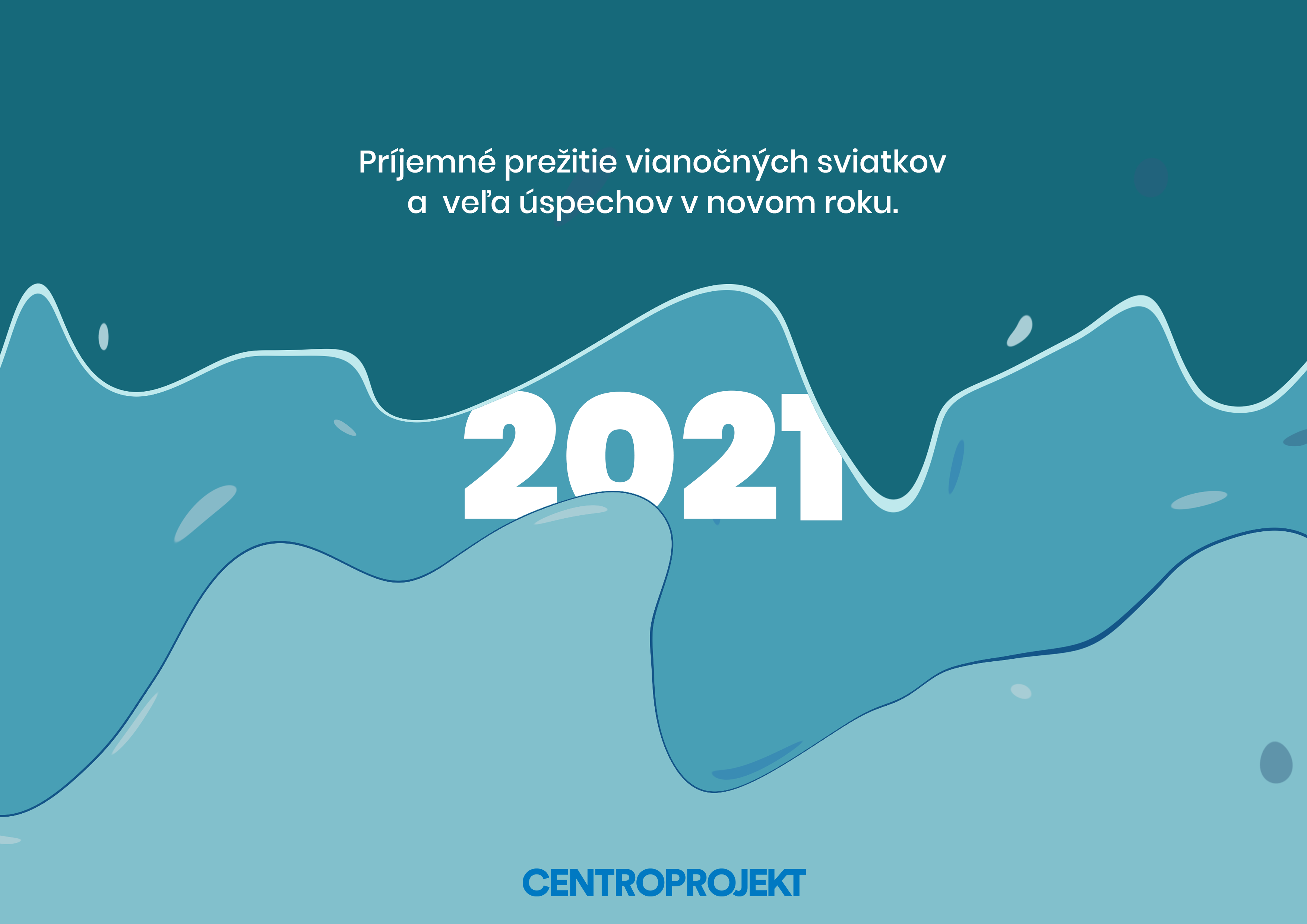 Novoročné prianie pre firmu Centroprojekt ktorá sa venuje projektovaniu kúpalísk a aquaparkov. K tomu smeruje aj štylizácia vĺn ktoré odkrývajú rok 2021.