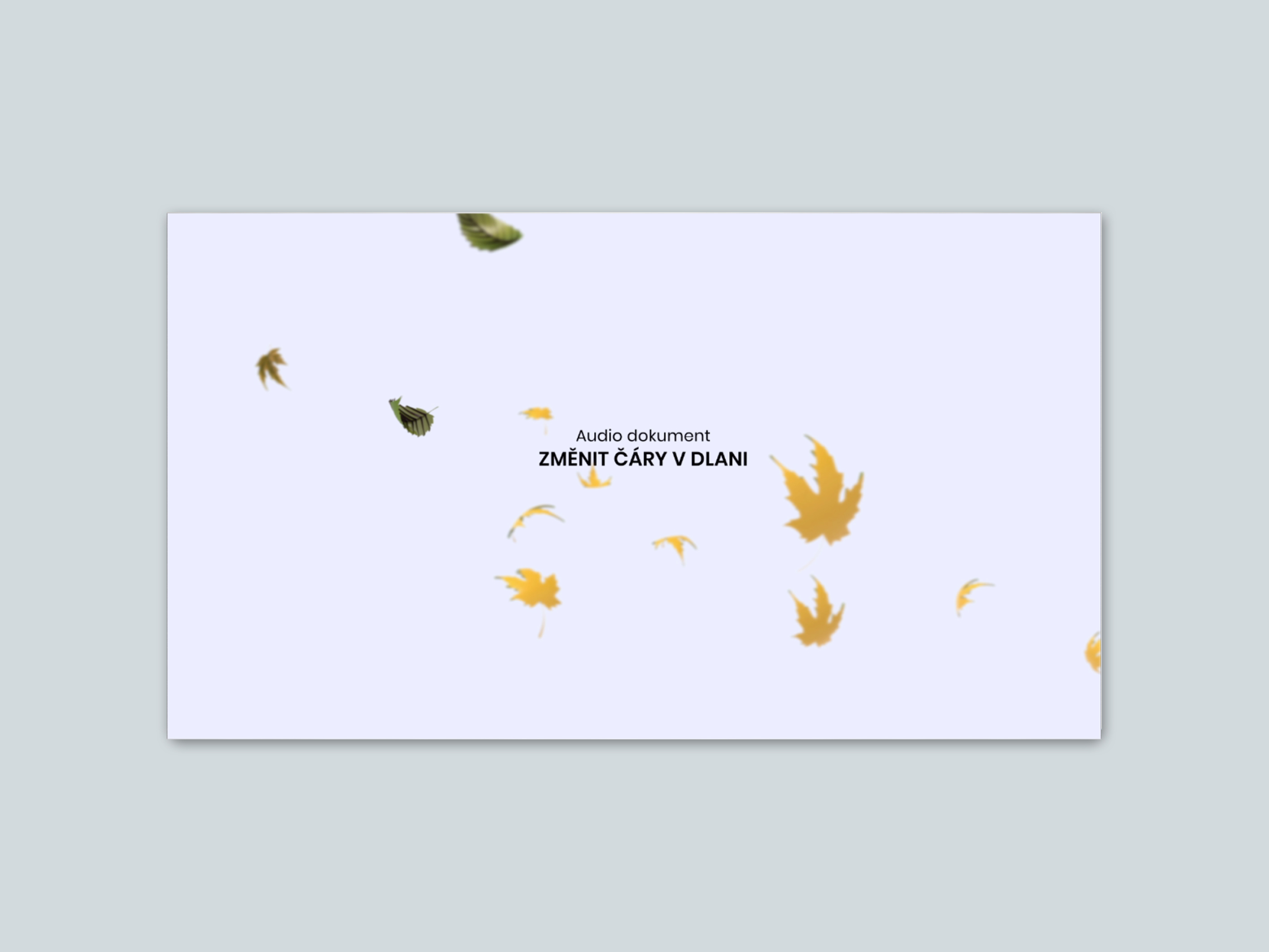 Změnit čáry v dlani. Inspiraci jsem hledala v motivech přírody a volnosti. Při čemž tyto slova nejvíc vystihují tuto audio nahrávku. Základem mé práce je design webu a doprovodná ukázka videa. Nechtěla jsem drobnější znázorňování děje v nahrávce, myslím že by si každý měl ve své fantazii představit tento děj sám. Zároveň jsem zapojila do videa textové postřehy, zpěv nebo myšlenky. Tyto podměty by měly udržet diváka u videa.