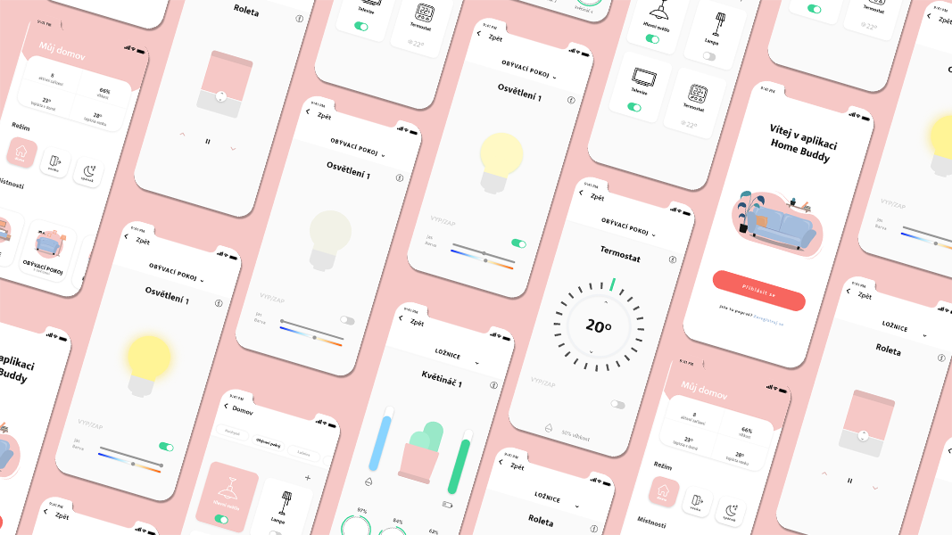 Home Buddy je aplikace pro chytrou domácnost. Chtěla jsem vytvořit aplikaci s jednoduchým uživatelským rozhraním. Pastelové barvy slouží k uklidnění a navození příjemné atmosféry domova. Celkově aplikace působí přehledně a čistě.