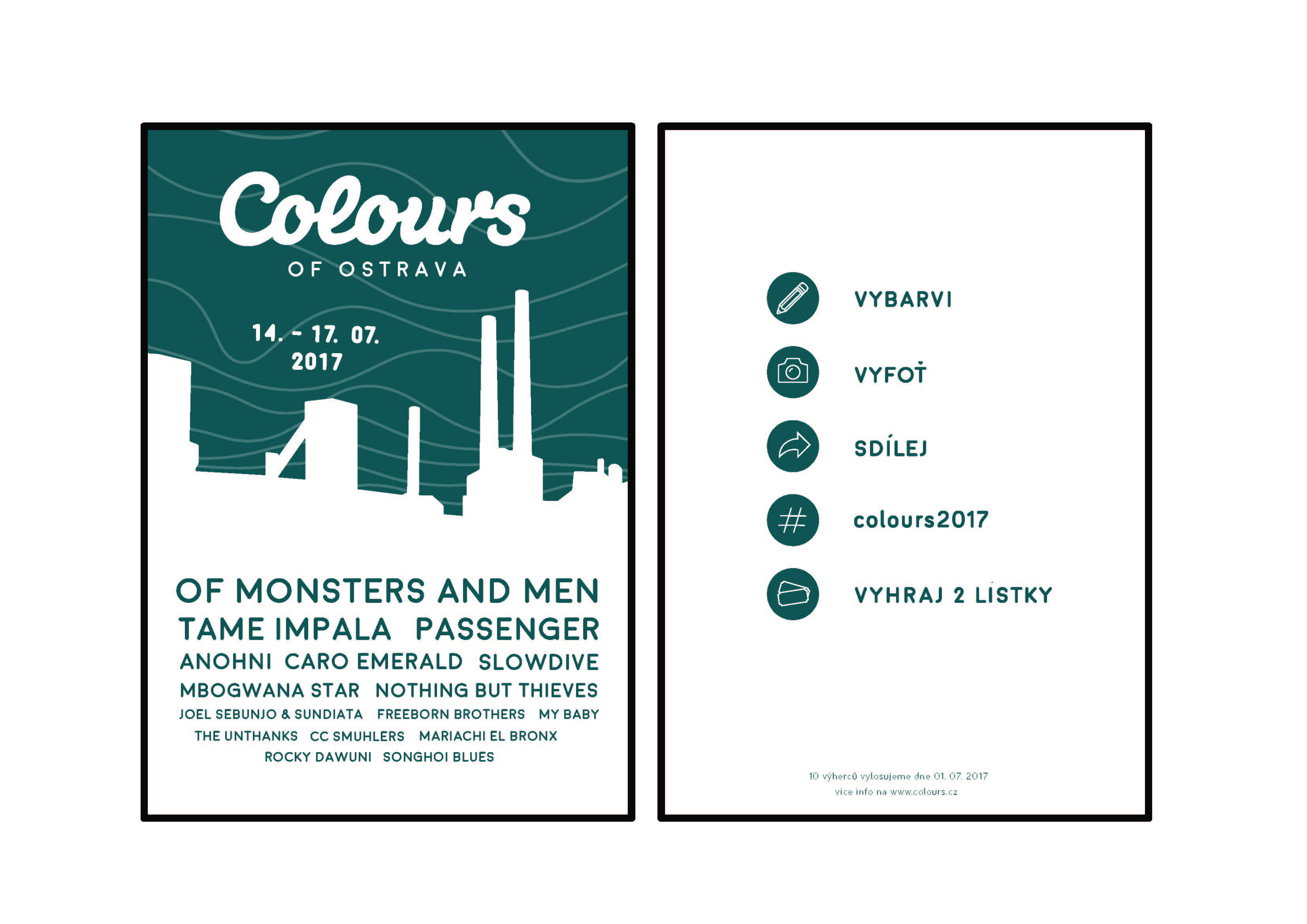 Visual style for music festival in Ostrava. This festival is unique because of the place where its situated, in the industrial zone on the perifery of the city Ostrava. I've made a silhouette of the zone that is characteric and the lines represent music vibes. I've created a coloring illustration that says: when you color it and share it on social medium you can win tickets for the festival. User can keep the flyer as a decoration and the main reason is to made it viral on the internet and be part of art promotion of the festival.