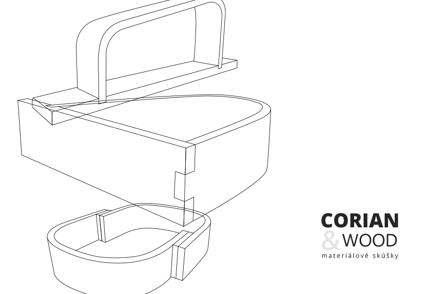 Cieľom materiálovej skúšky k bakalárskej práci - Multifunkčný interiérový prvok bola kombinácia materiálov Corian & drevo, ich spoje a samotné spracovanie.