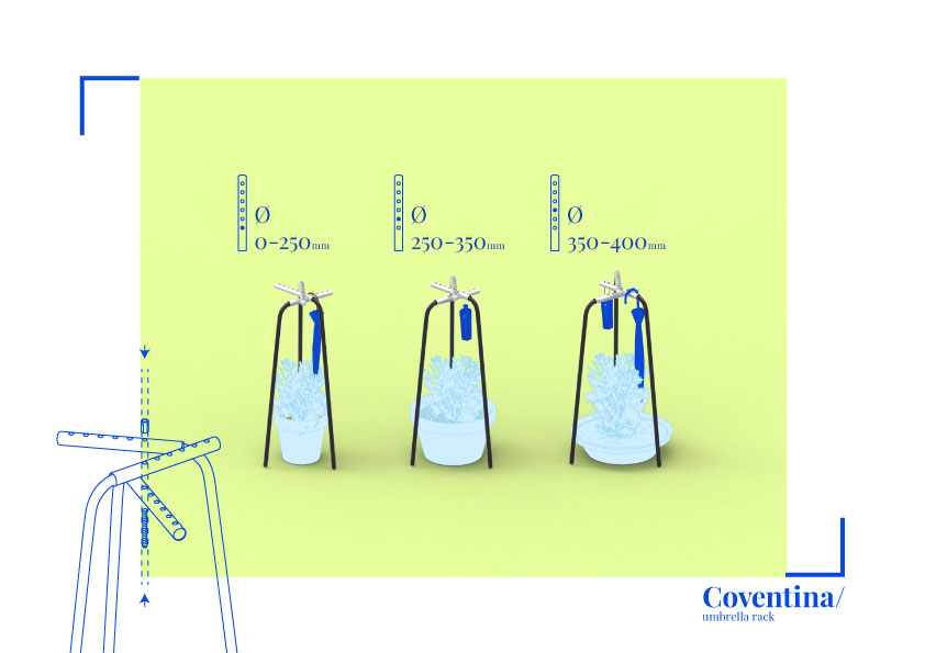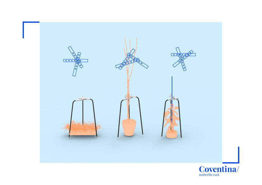 Coventina je trojnohý stojan na dáždniky, ktorý využíva dažďovú vodu z mokrých dáždnikou na polievanie rastlín.