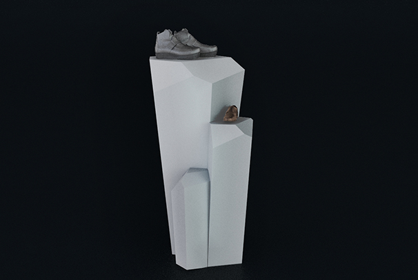 Základný modul pozostáva z troch druhov kryštálov, rôznych veľkostí. Ich vzájomnou kombináciou—otáčaním môže užívateľ vytvoriť množstvo kompozičných variácií. Stojan je prístupný zo všetkých strán, výstavná plocha je navrhnutá pre vystavenie páru obuvi.