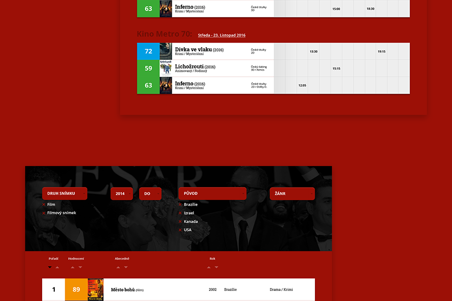 U redesignu ČSFD jsem se zaměřil na lepší orientaci mezi hodnocenými filmy a přehlednější vyhledávání v žebříčcích.