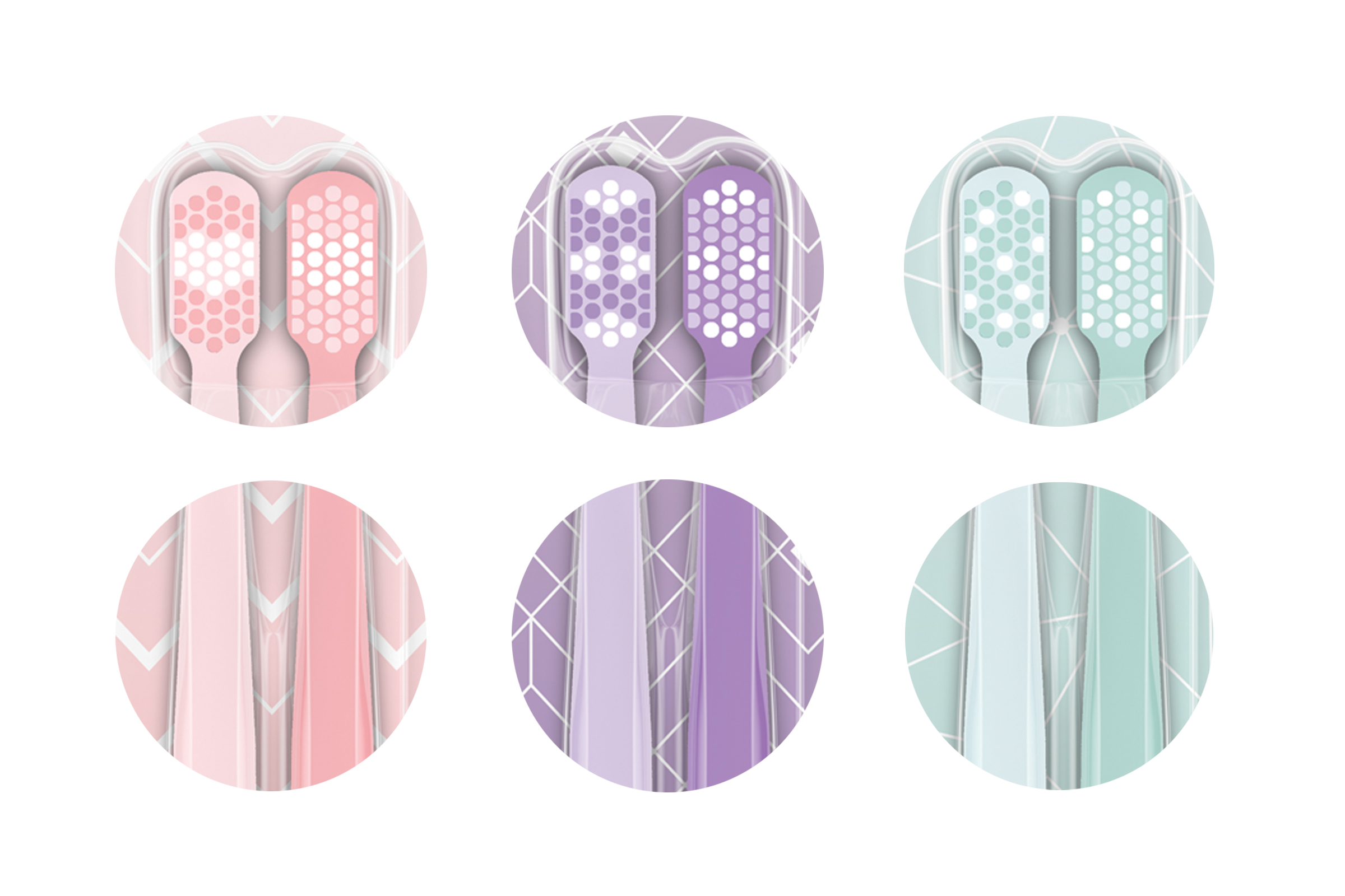Cílem této výzvy bylo navrhnout pozadí obalu pro limitovanou edici kartáčků Curaprox na rok 2021. Vytvořila jsem tři návrhy, které můžou fungovat jak samostatně, tak pospolu jako rodina. Růžový a fialový vzor jsou založeny na principu symetrického opakování prvku. Oproti tomu tyrkysový motiv vychází z nepravidelného rozmisťování bodu a následného spojení linkou. Všechny návrhy jsou laděny do jemně pastelových barev, které evokují barvu bublin. Barevnost a štětinky na kartáčku vycházejí vždy z designu pozadí.