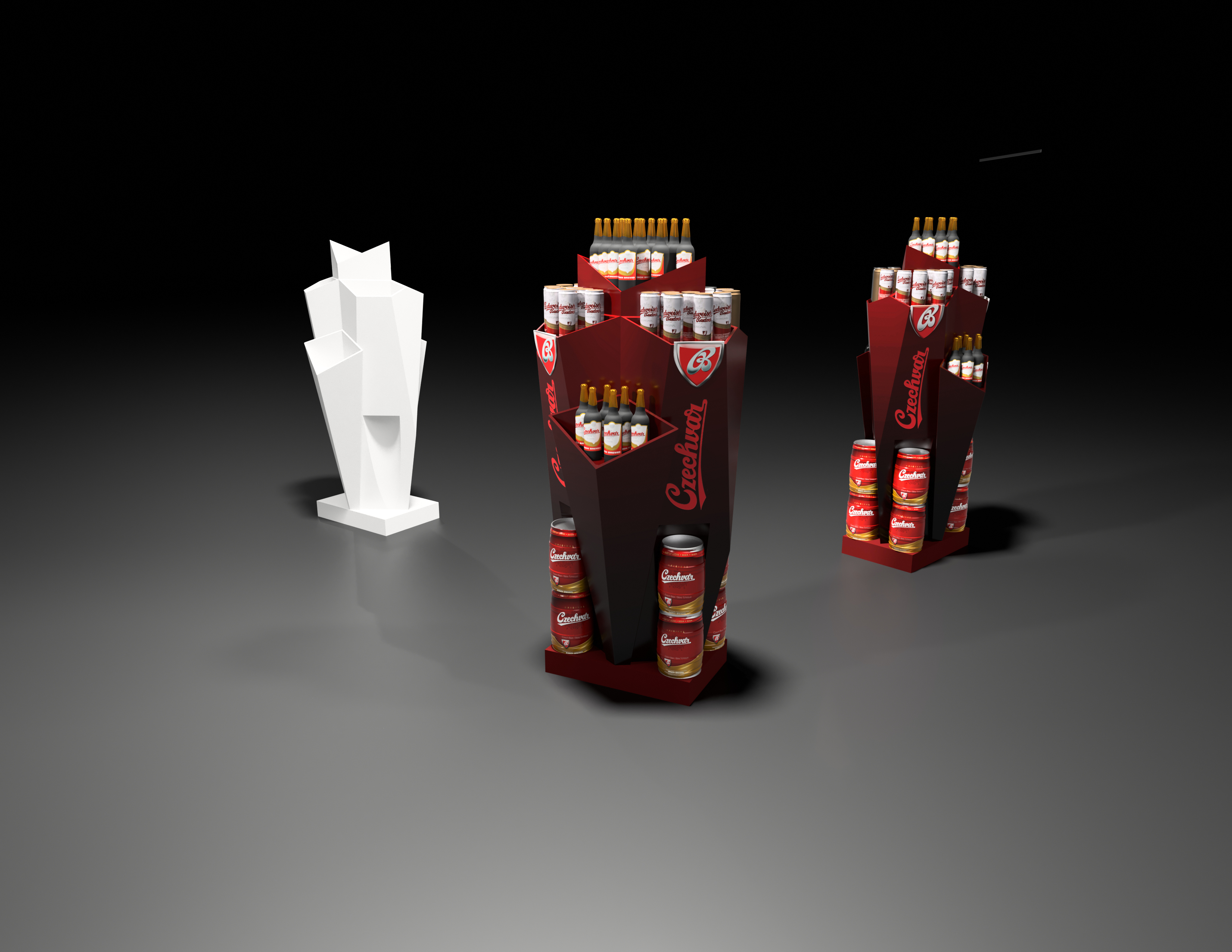 Dočasný prodejní stojan určený pro umístění v prodejnách specializovaných na prodej alkoholu v Kanadě.