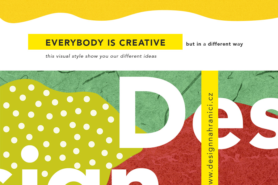 Zpracování vizuálního stylu k akci Design na hranici. Tento vizuál se soustřeďuje na naši kreativitu, to jak jsme každý jiný, náš design je jiný a naše příštupy a hranice k němu jsou odlišné.