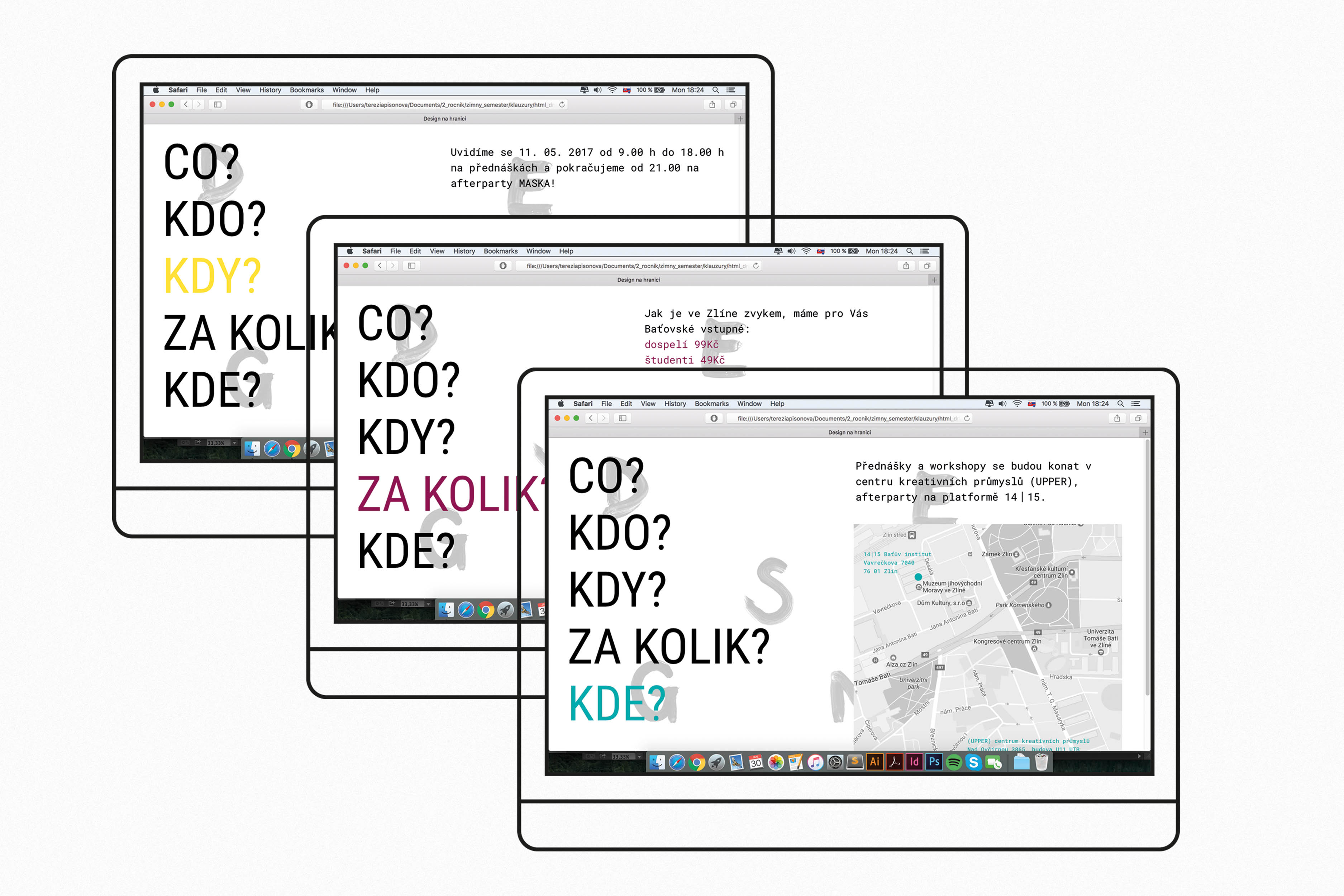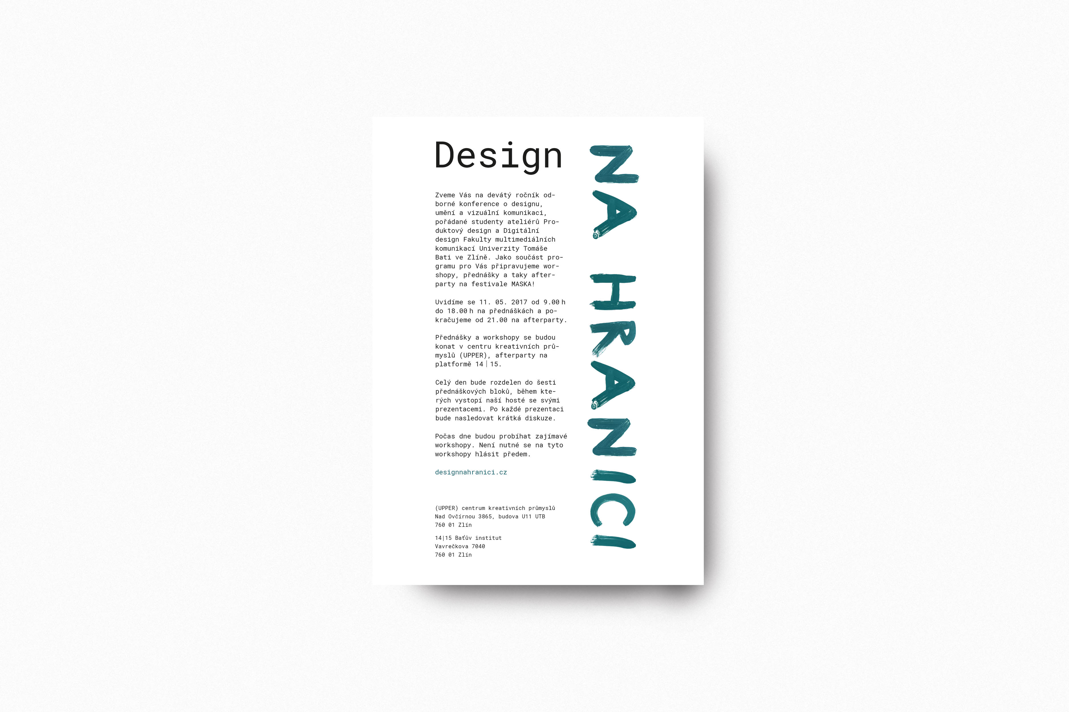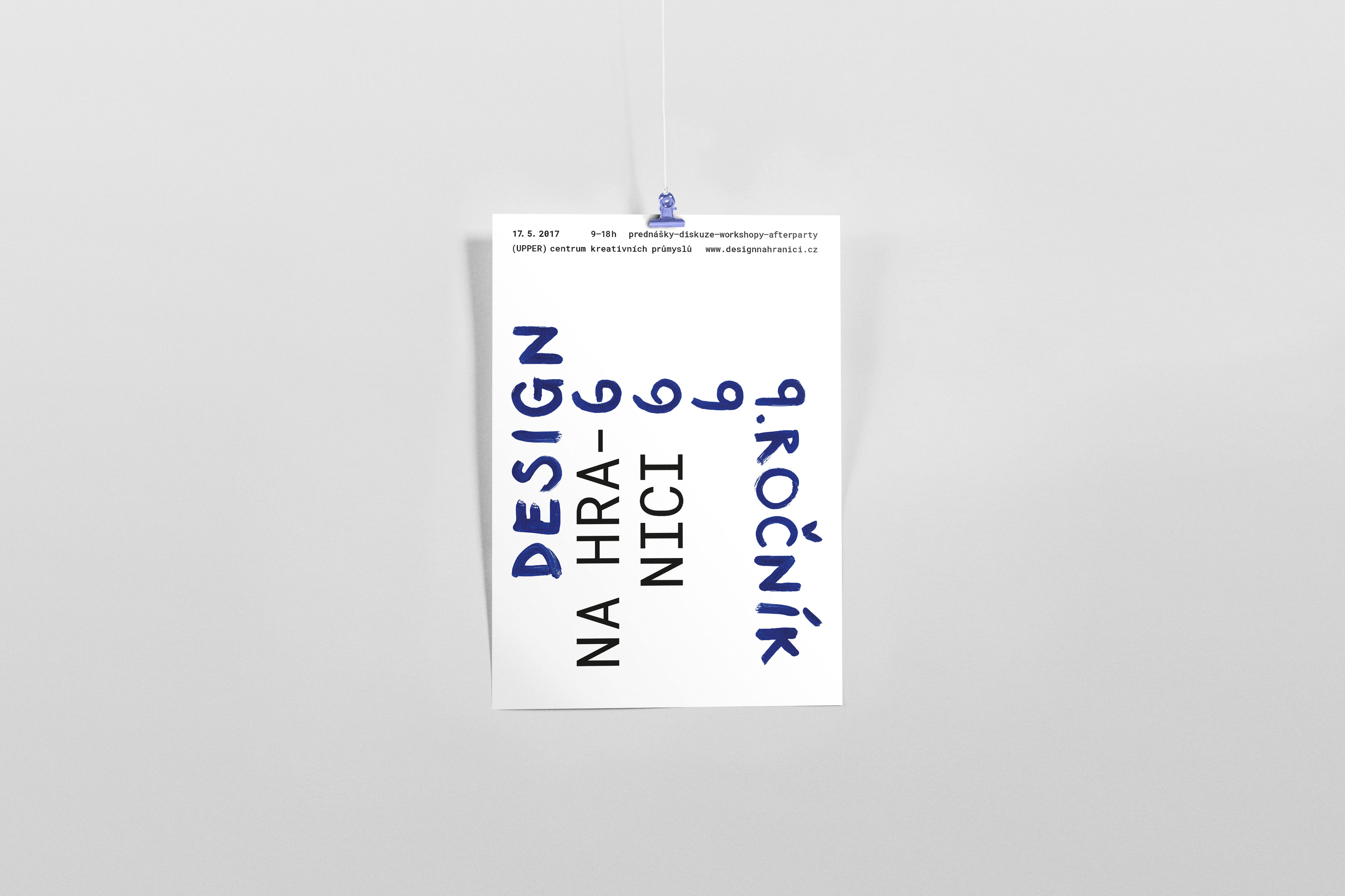Visual style for proffesional conference Design na hranici (Design at the border). The number 9 was main element for my work. 9th year, 49/99 crowns for entry. The change from 9 to "G" is like a process of designing. In the beggining of designing you never know what it will looks like in the end. The unconventional composition of the poster support the idea of the "G to 9 process" and the idea of dividing the word "hranici" (border). The webpage is very simple and because it's web for event, I asked main question you need to know when you want to visit some of the events (What? Who? When? How much? Where?) with simple answers for questions.