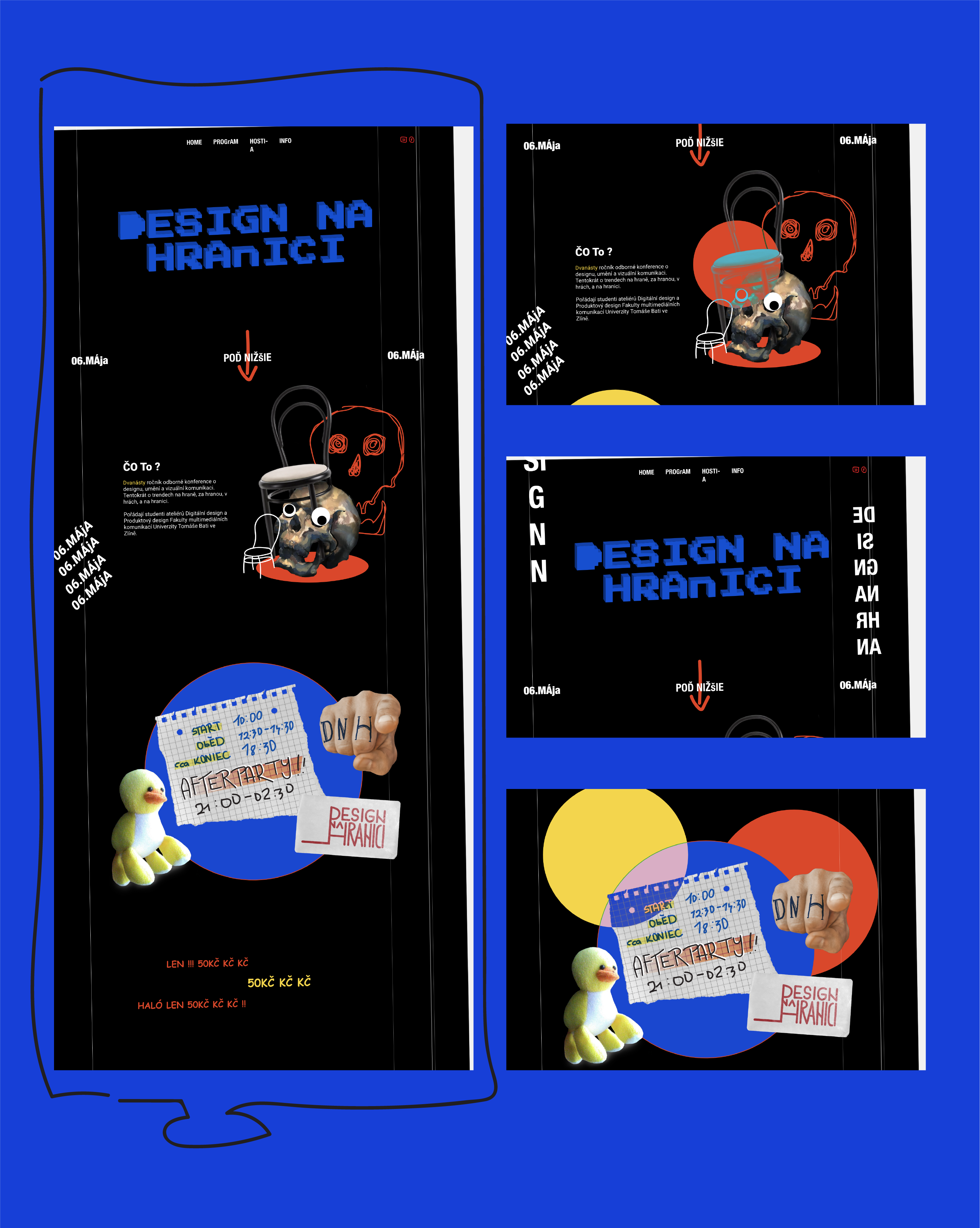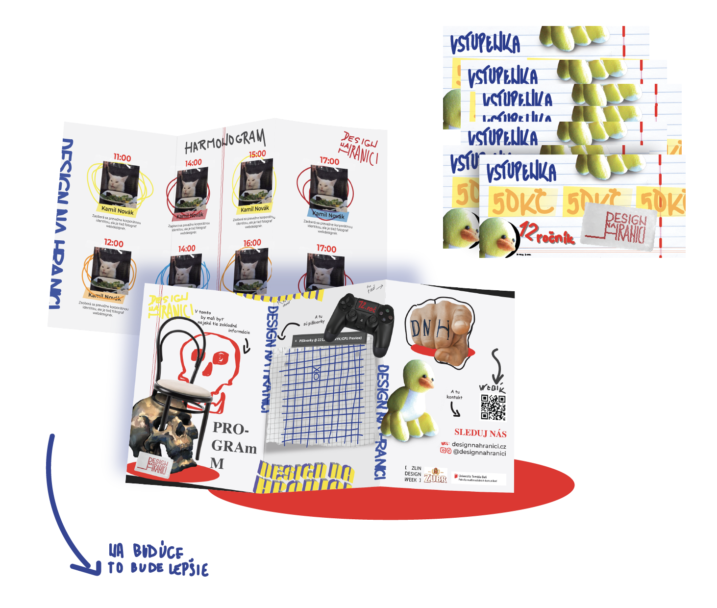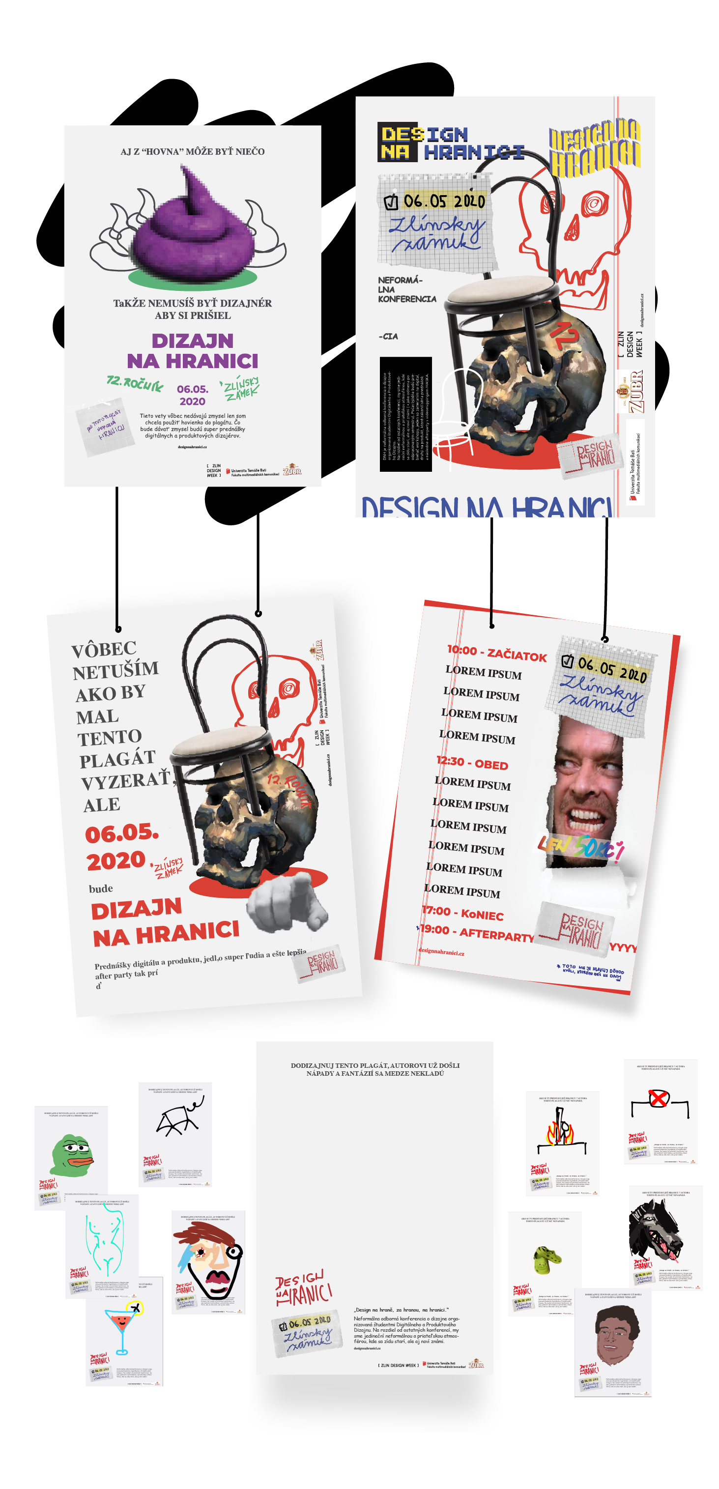 DesiGn na hranici je neformálna odborná konferencia o designe. Takže tak isto ako budú neformálne tieto vety, tak aj vizuál. 12 ročník DNH som chcela viesť troška do iného smeru. V dizajne som vytvorila jednotný vzhľad, ktorý sa nedrží žiadnych pravidiel. Taktiež sa do tvorenia mohli zapojiť aj ľudia zo širšieho okolia, ktorý nemuseli byť práve dizajnéri aby niečim prispeli. Týmto spôsobom som sa snažila bežným ľudom priblížiť konferenciu a taktiež mi došli nápady tak som sa mohla aspoň "inšpirovať".