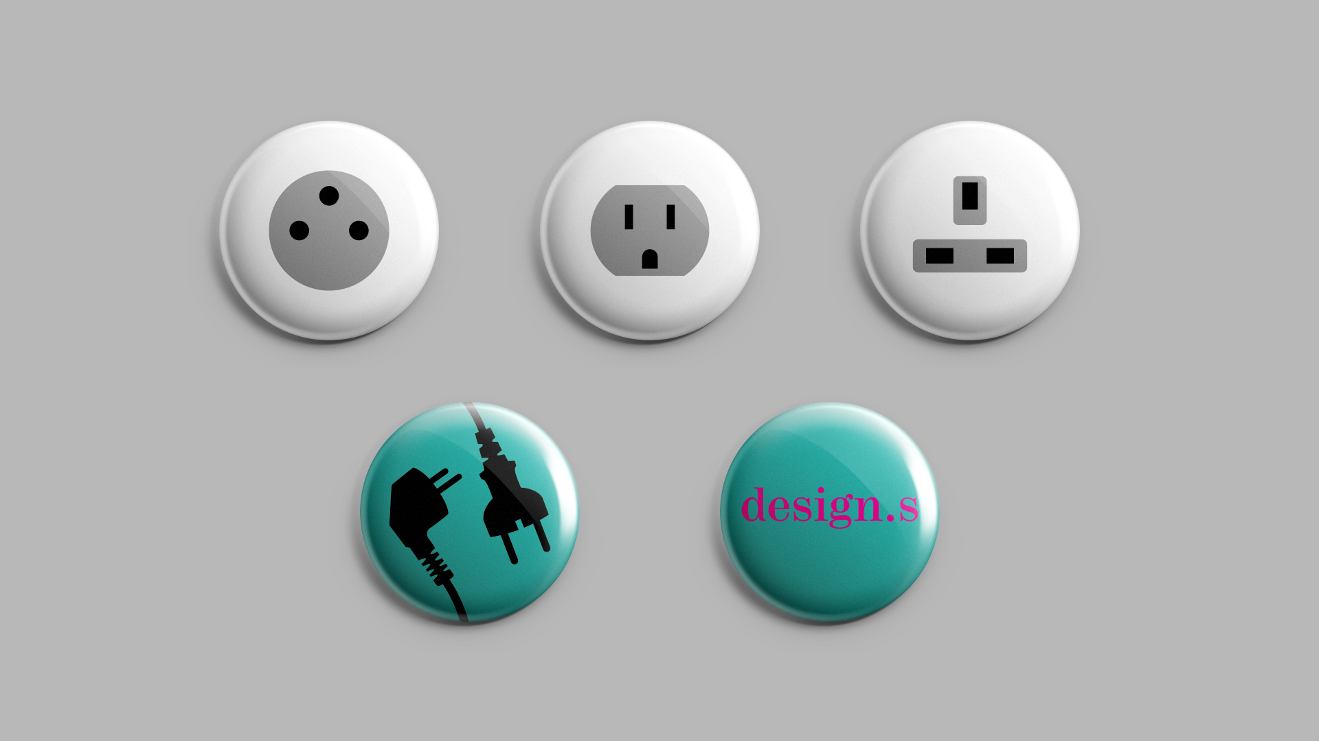 Návrh vizuálního stylu Design.s - brněnského bienále mezinárodního studentského designu. Zadání jsem pojal s trochou nadsázky a zobrazil studentský boj o elektrické zásuvky. Studenti designu jsou mobilní a většinou přenášejí své počítače a další vybavení na různá místa - mohou tak pracovat nejen v ateliéru, ale i na koleji, také na dlouhých přednáškách, v knihovně, doma, v kavárně a prostě kdekoliv, kde je elektrická zásuvka. Design je tedy závislý na počítačích a počítače jsou závislé na zásuvkách. Zobrazený motiv lze také chápat tak, že do soutěže Design.s se přihlásí více uchazečů než kolik jich skutečně svou práci vystaví (v případě zásuvky se ne na každého dostane - kabelů v mém pojetí je záměrně více než kolik je zásuvek). A jelikož je přehlídka mezinárodní, jsou mezinárodní i zásuvky.