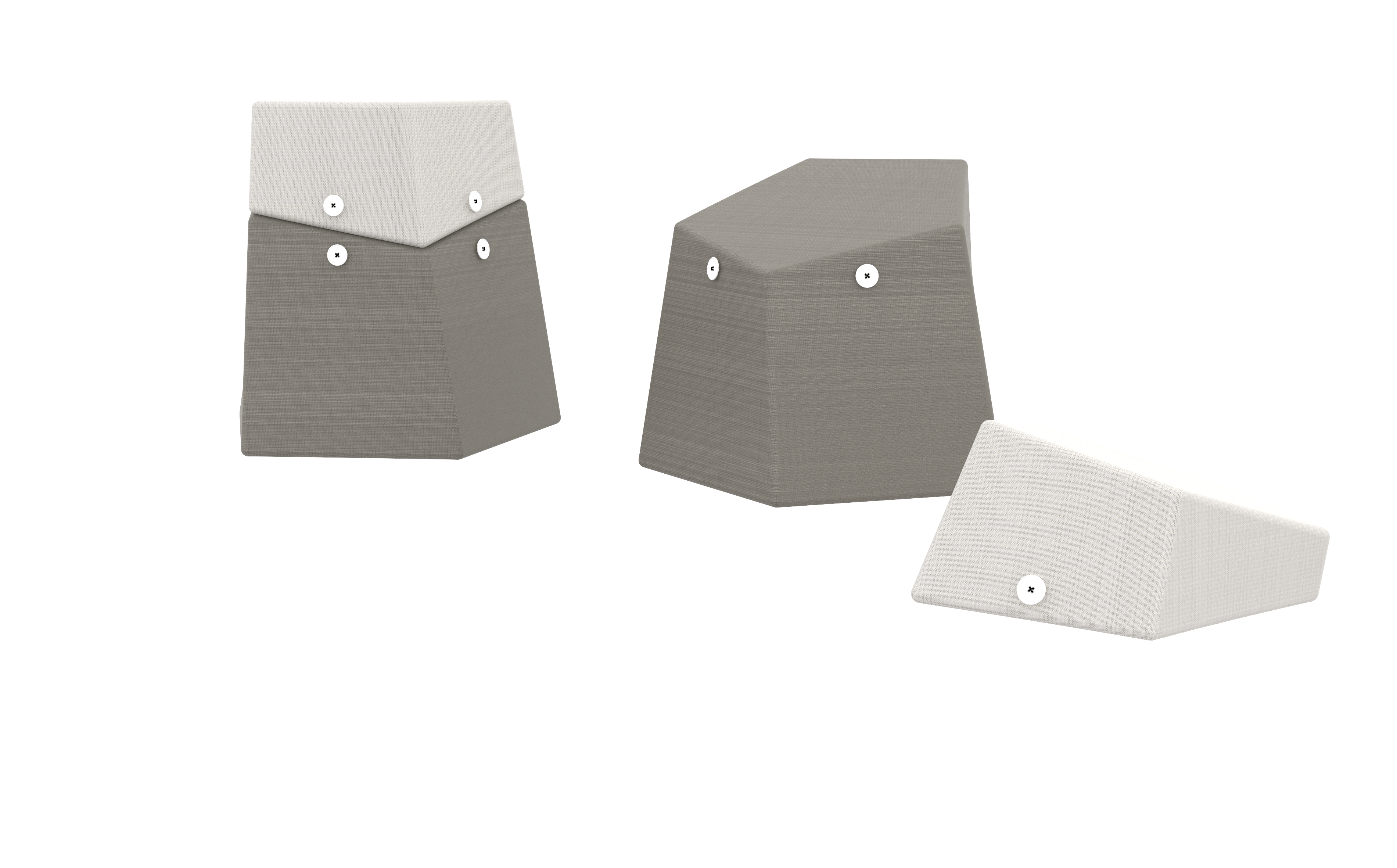 Svrchní materiál je potahová látka odolná vůči opotřebování. Vnitřní část je tvořena z extrudovaného polystyrenu a molitanu.