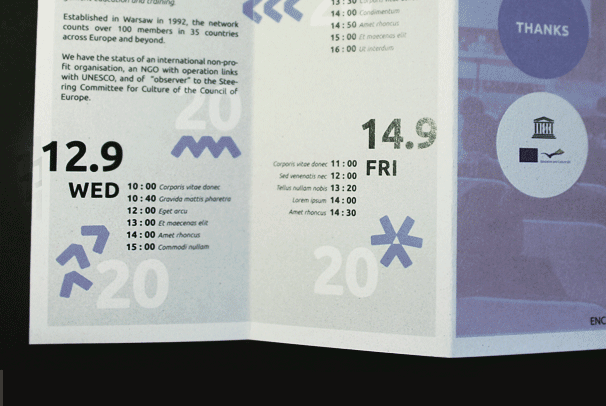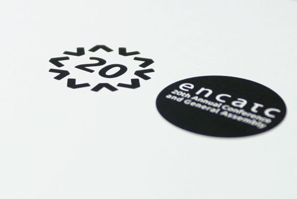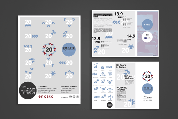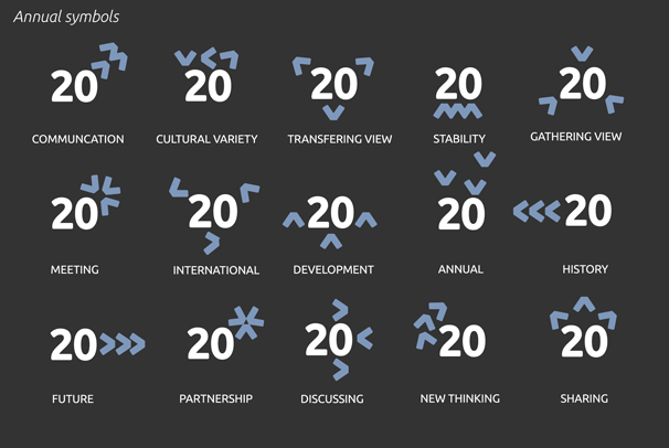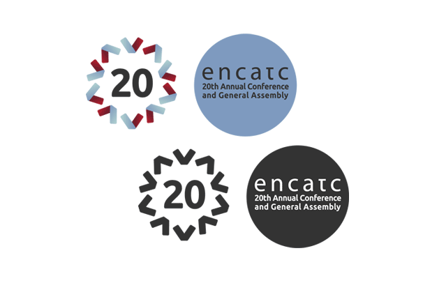 Annual logo for Encatc´s 20th anniversary using arrow like main symbol. Logo with symbols higlights the spirit, history and values of this European network on Cultural Management and Cultural Policy education.