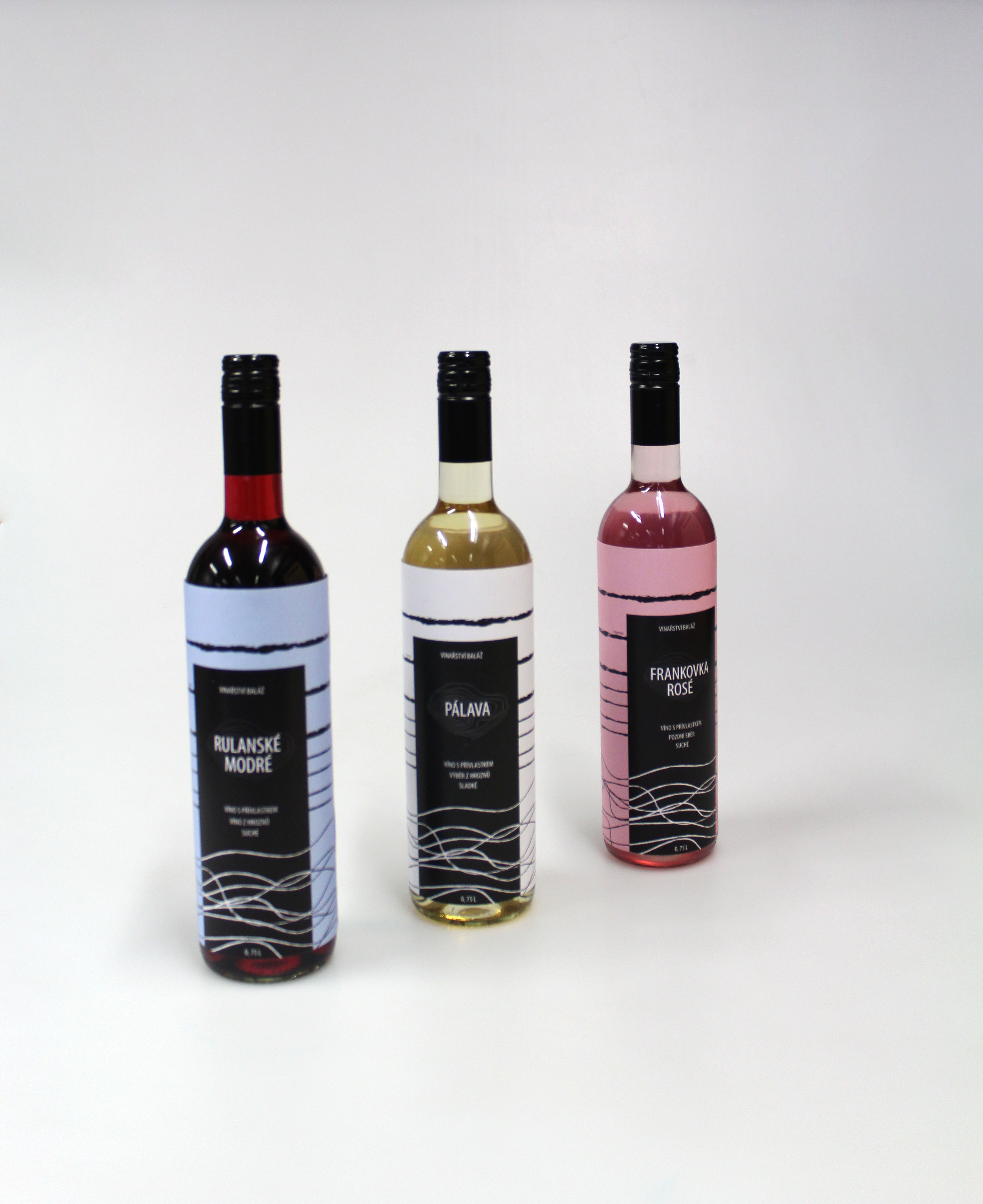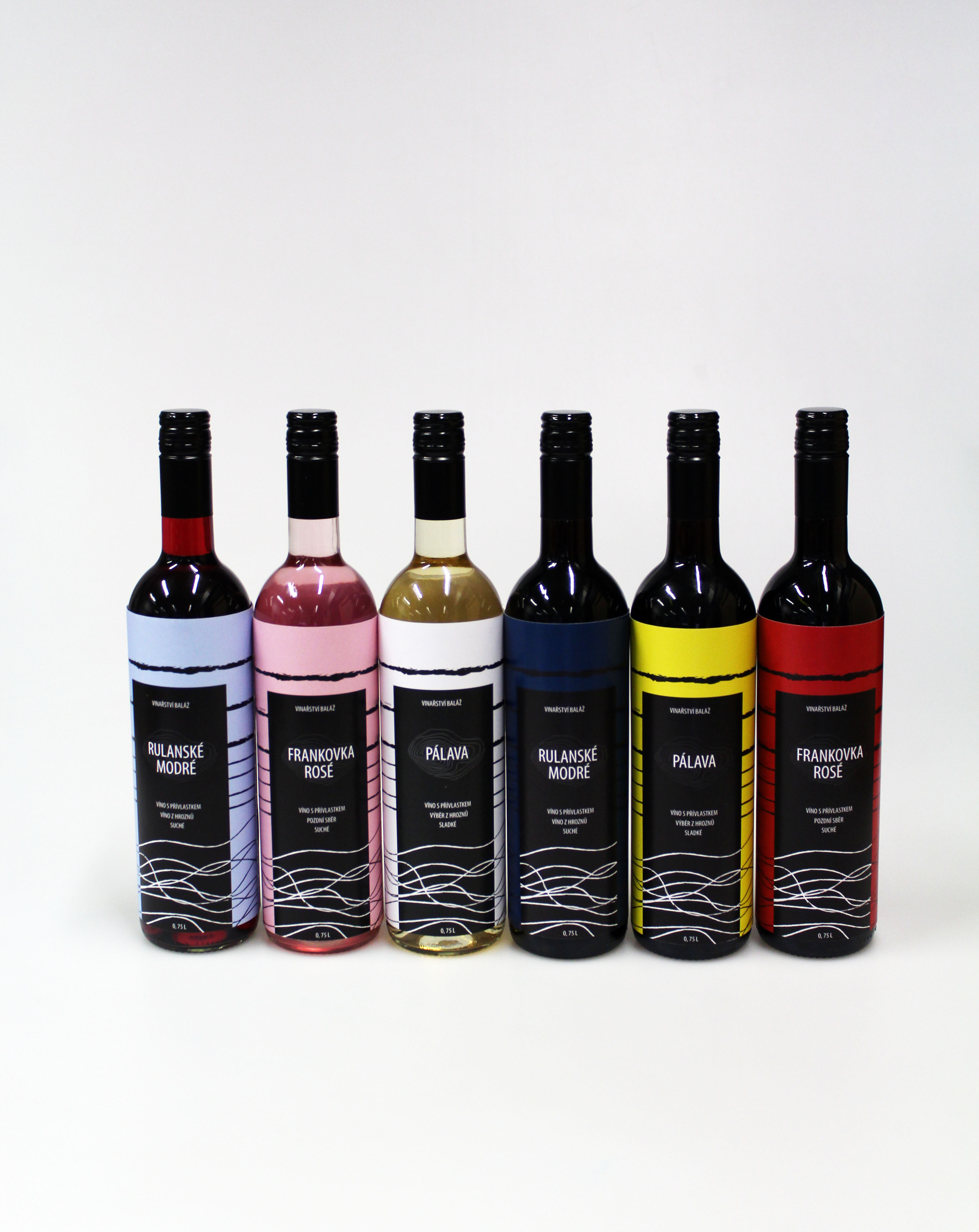 Sada etiket na víno bílé, červené a růžové pro vinařství Baláž. Vytvořila jsem etikety pro dva typy lahví průhledné a černé. Na každé z etiket se nachází skrytý vtip. Linie na ní značí stav člověka při vypití vína. Začátek je klidný, proto jsou linie vodorovné a postupně se začínají vlnit.