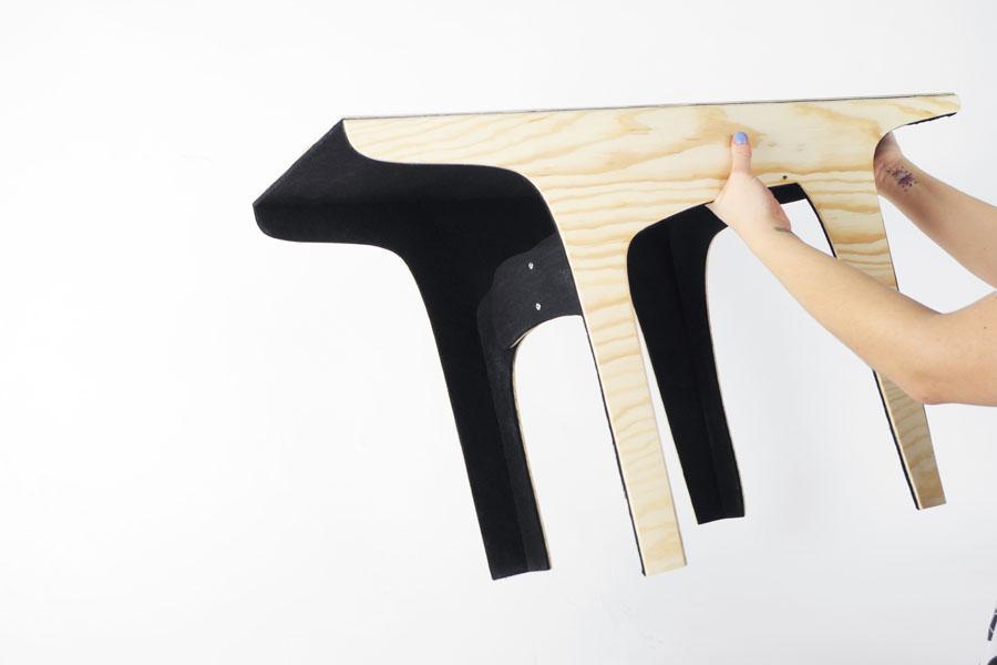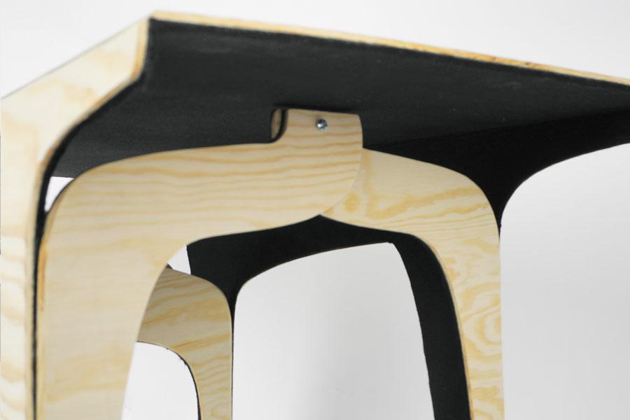 Lehký funkční stolek který lze převrátit naruby a používat jej jak dřevěný tak plstěný a v rozloženém stavu jej lze využít jako podložku na zem.
