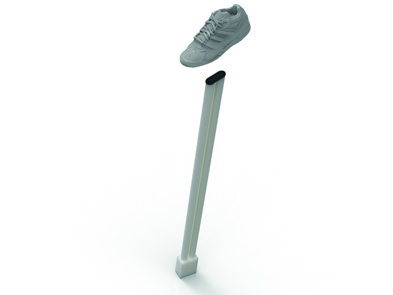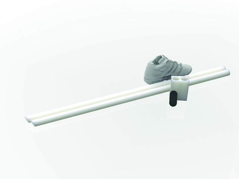 Stojan Folding boot je navrhnutý tak, aby udržal akýkoľvek typ obuvi. Spracúvava POM materiál, ktorý tvorí siluetu a základnú časť stojanu. Doplnkový materiál je podložka, ktorá je prišróbovaná do vrchnej časti tyčí. Časť, ktorá pevne drží topánku, je z protišmykovej podložky. Stojan je ľahký, ľahko rozoberateľný. Ku postaveniu stojana je potrebný iba šróbovák. Je prenosný a skladný. Rozmery stojanú sú: 50x90x1100 mm. Stojan vystavuje pol pár topánok.