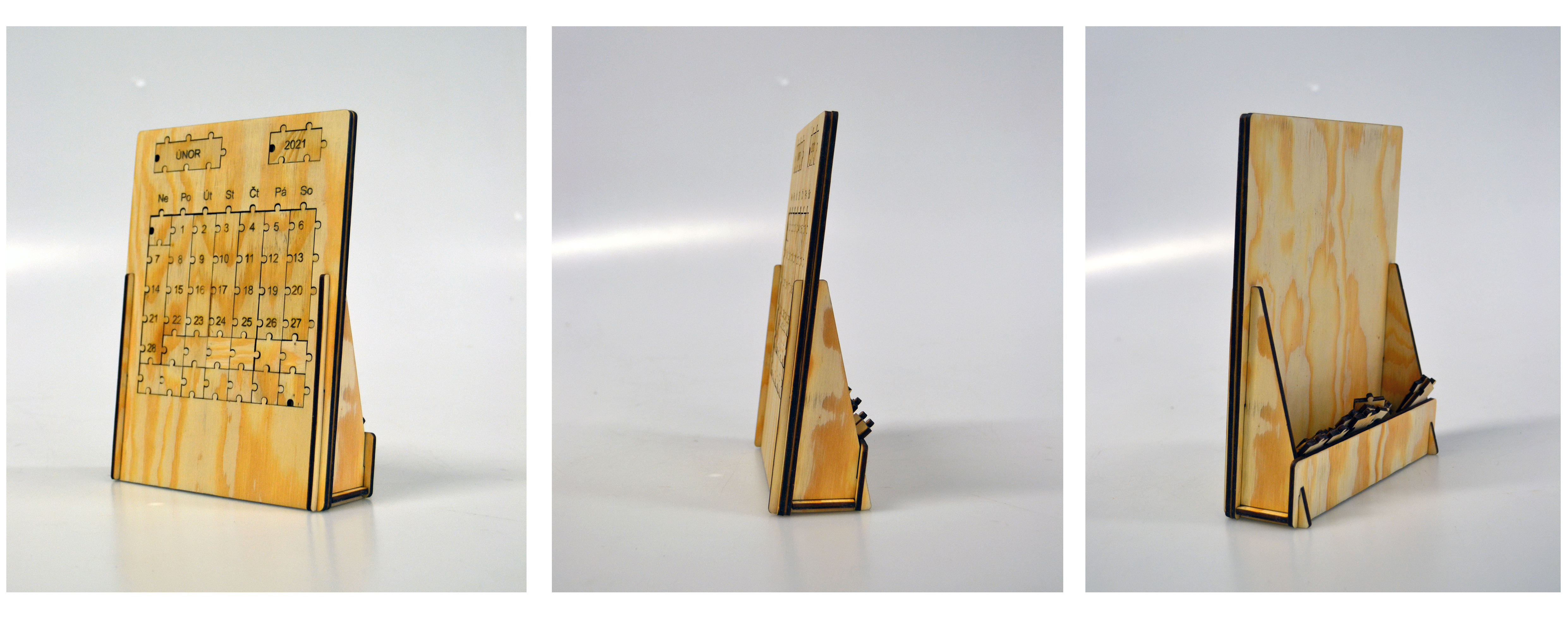 Návrh stojanů a věčného kalendáře na pracovní stůl. Každý produkt inspirovan principem flat-pack(suché spojení). Lze složit a rozebrat snadno, vyrobený z překlizky různé tloušťky.