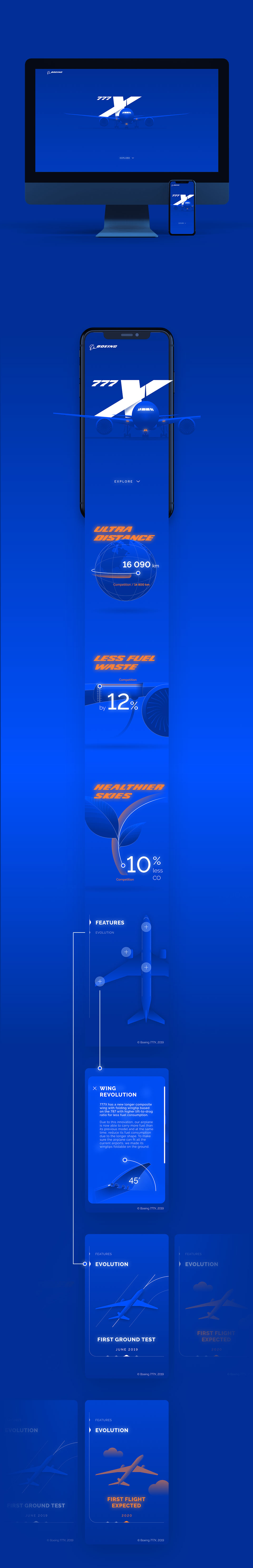 Ako fanušík lietadiel som sa rozhodol v rámci zadania infografiky využiť jeho špecifiká k prezentácii nového typu lietadla značky Boeing, konkrétne typ 777X. Ako formu som vybral responzívny web, v rámci ktorého uvádzam jednotlivé výhody lietadla oproti konkurencii, ako sú spotreba paliva, dolet, ekologickosť a zároveň inovácie, ktorými lietadlo disponuje. Tieto údaje som sa snažil spracovať súčasnou a pochopiteľnou formou pomocou dynamickej typografie a zaujímavými ilustráciami tak, aby si prišli na svoje fanušíkovia ale aj bežný ľudia. V rámci webu môže užívateľ nájsť aj animovanú časovú osu, ktorá predstavuje evolúciu, ktorou si lietadlo prešlo a ešte prejde do svojho prvého letu.