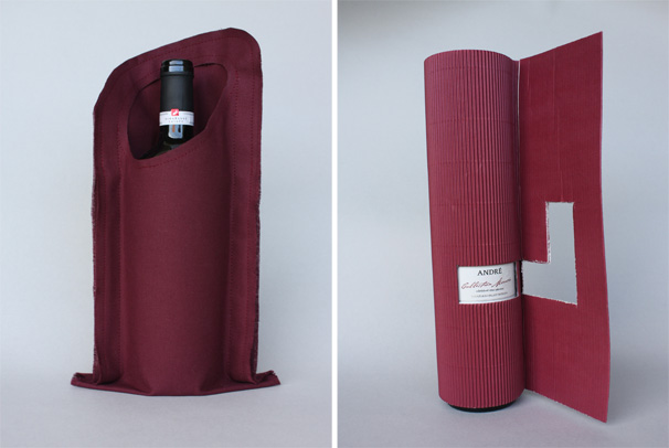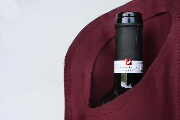 Dárkové obaly na víno značky Zaječí. Látkový organický obal a papírový geometrický obal. Barevně laděno na červené víno.