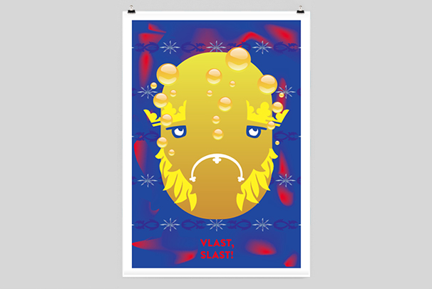 Plakát si klade za cíl kritiku sociální problematiky falešného vlastenectví. Pracuje s prvky státní symboliky v kontrastu se zástupnými symboly pro nižší pudy typického českého "povaleče". Nápis "Vlast, slast!" vznikl přetransformováním cimrmanovského "Chlast, slast!". Absurdní nádech tématu podpořil přístup k tvorbě podobný koláži.