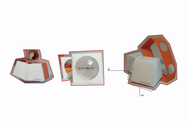 Obal sa skladá z dvoch častí, pričom je spojený do jedného celku ktorý formuje tvar. Po odňatí vrchnej časti obalu zostanú dva samostatné kusy, ktorými môžeme manipulovať - hrať sa. Profil pohára umožní rotáciu, samostatný obal podporuje taktiež túto vlastnosť. Horizontálne položenie obalu umožňuje nazrieť do vnútra pohára, kde sa skrýva logotyp FMK. Pôdorys pohára slúži ako šošovka, priehľadná optická sústava ohraničená dvoma zakrivenými plochami, deformuje logotyp a stáva sa zaujímavejším pre užívateľa.