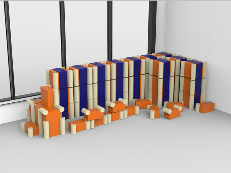 Set jedného variabilného stavebého prvku, ktorý podporuje rozvoj detskej fantázie, detskú motoriku a hru. Je inšpirovaný zlínskou architektúrou. Prvky sa daju skladať vedľa seba ale aj na seba, súdržnost medzi nimi podporujú magnety ktoré sú súčasťou pogumovanej látky. Samotný prvok tvorí tvrdený molitán na ktorom je ušitý poťah, ktorý sa dá snímať. Ako doplnok je pridaný evak, s potlačou náznami zlínských ulíc, slúži ako obal pri ukladaní prvkov po hre ale aj ako podsedák do kina.