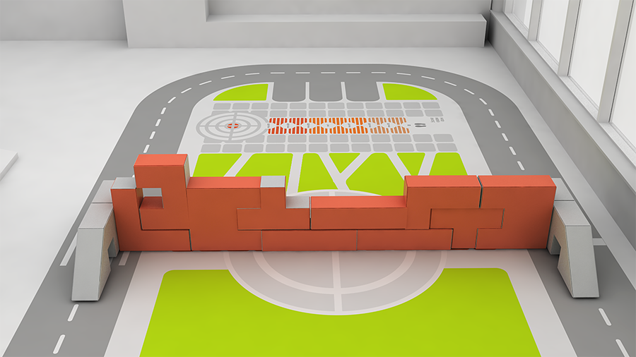 Molitanová stavebnice pro Klubovnu Malý Zlín v novém Prioru. Skládá se z deseti typů kostek a dvou podložek, které dohromady tvoří univerzální soubor, ze které lze poskládat nespočet různých kombinací. Děti si tak v klubovně mohou vytvořit sportovní hřiště (branky, stěna) nebo třeba malý Zlín. Součástí návrhu je i multifunkční hrací plocha, která obsahuje skákacího panáka, okruh pro koloběžky, metr pro skoky a prvky Zlína, jako je Gahurův prospekt viditelný z Prioru. Současně na ni lze hrát také fotbal, florbal a jiné míčové hry.