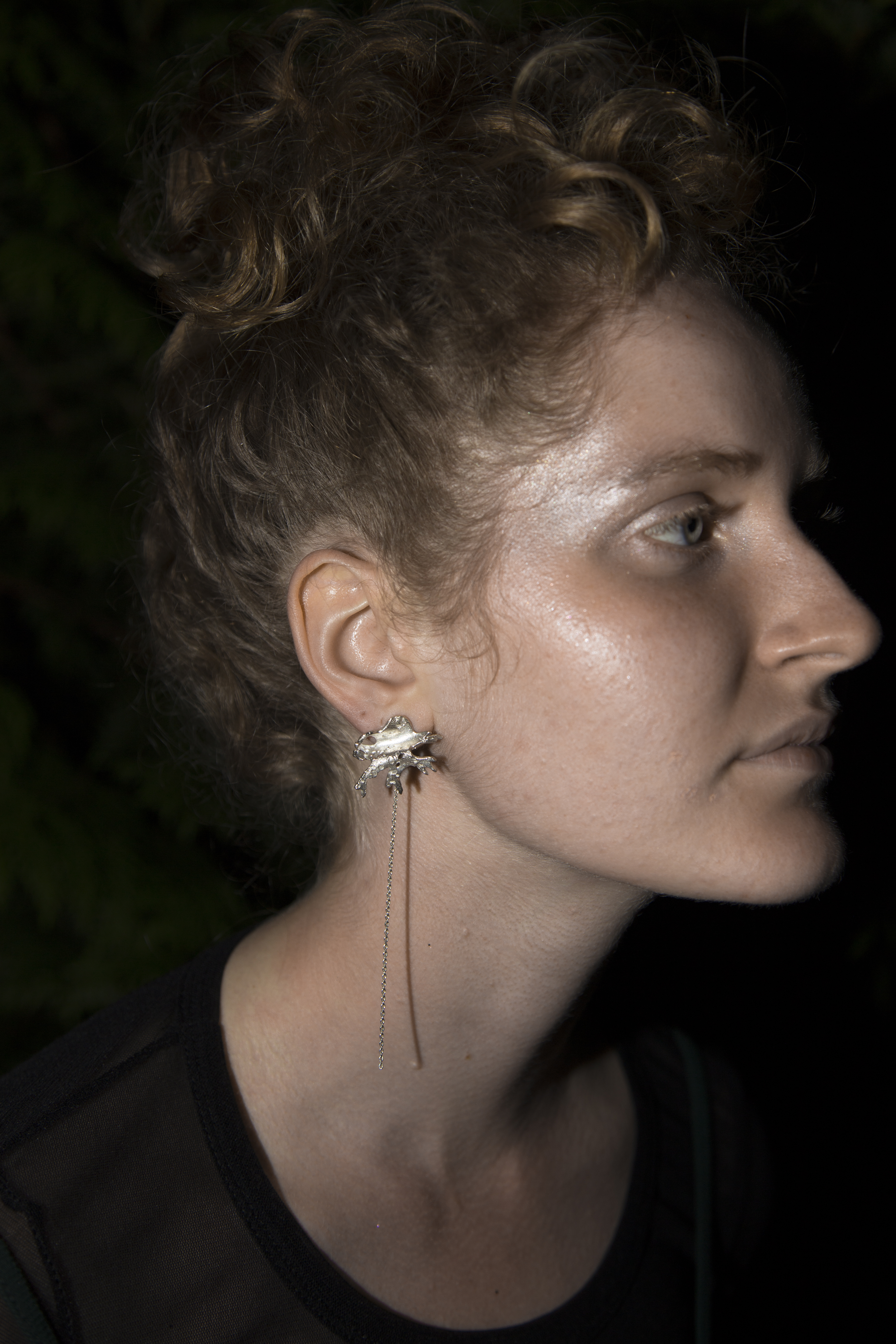 Šperky komunikujú s okolím a reagujú na súčasnú situáciu. Kolekcia šperkov zobrazuje živočíšne bunky napadnuté vírusmi. Prepojila som dva protikladné prvky, prírodný motív s umelo vytvorenou štruktúrou.