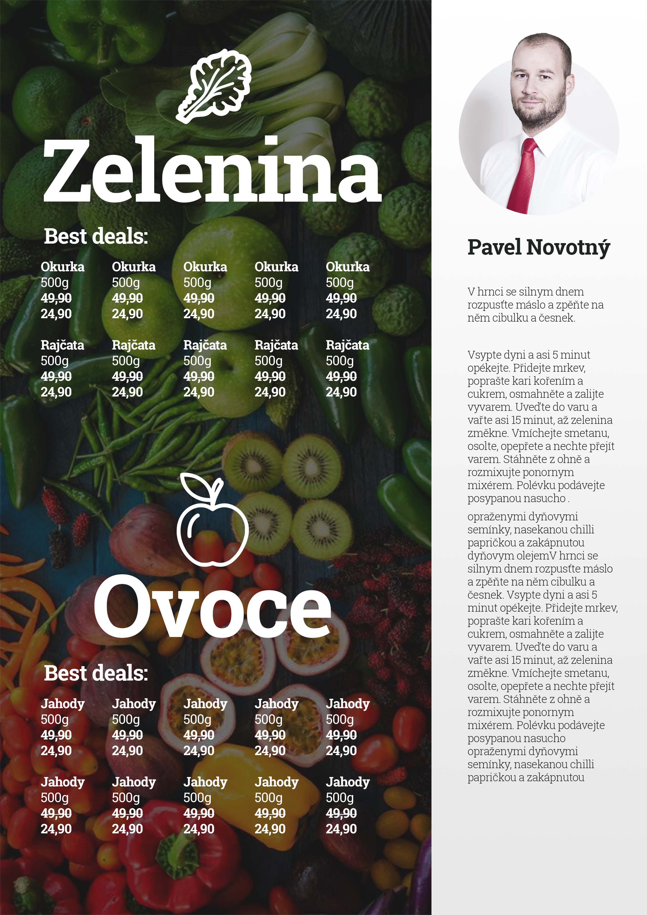 Leták se mění podle tématu daného týdne (měsíce/sezónní akce). Uvnitř je přidána dvojstránka, která má zabránit tomu, aby lidé leták hned vyhodili.