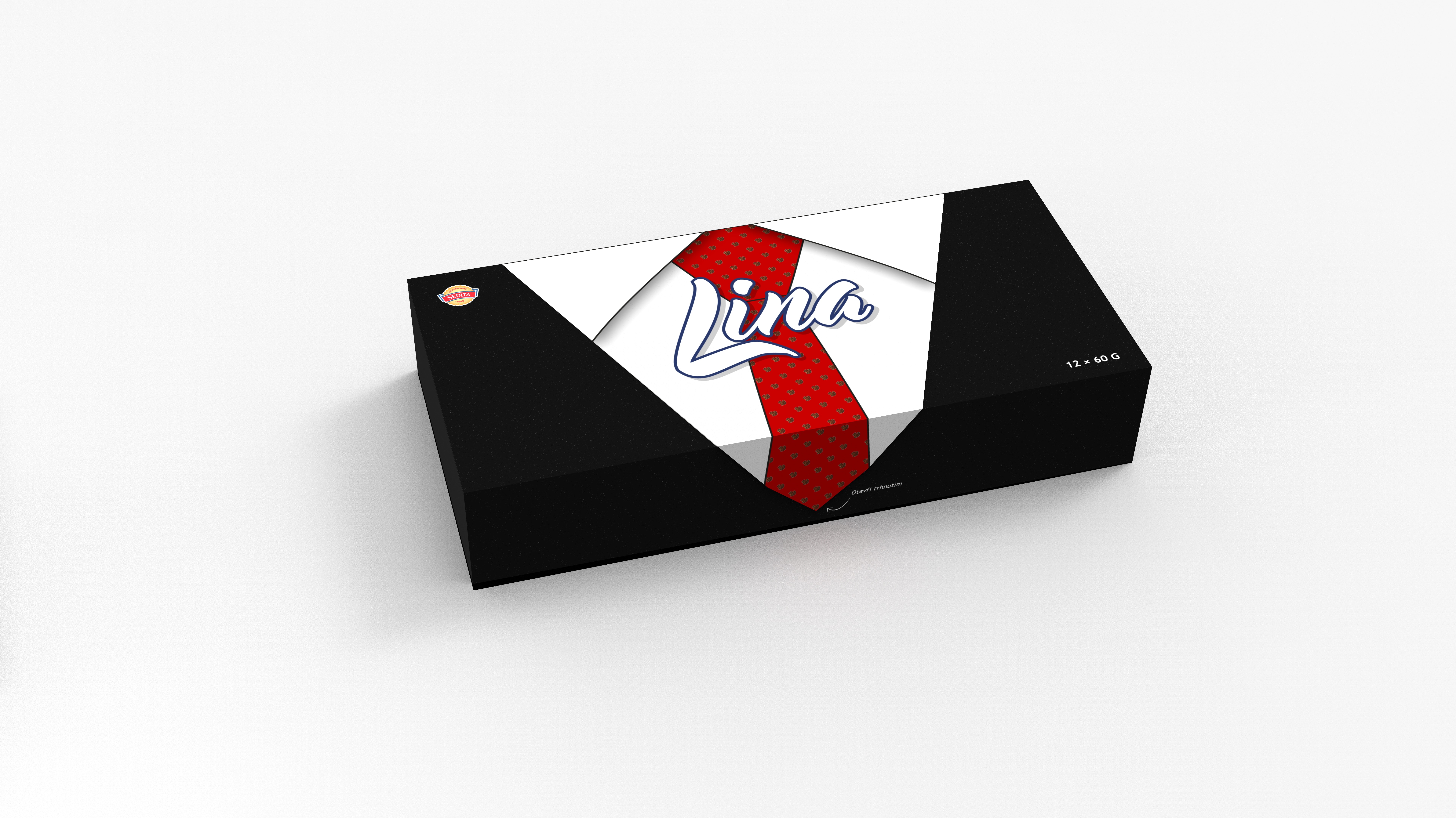 Balení oplatek Lina s jedinečným překvapením v podobě série stylizovaných kravat.