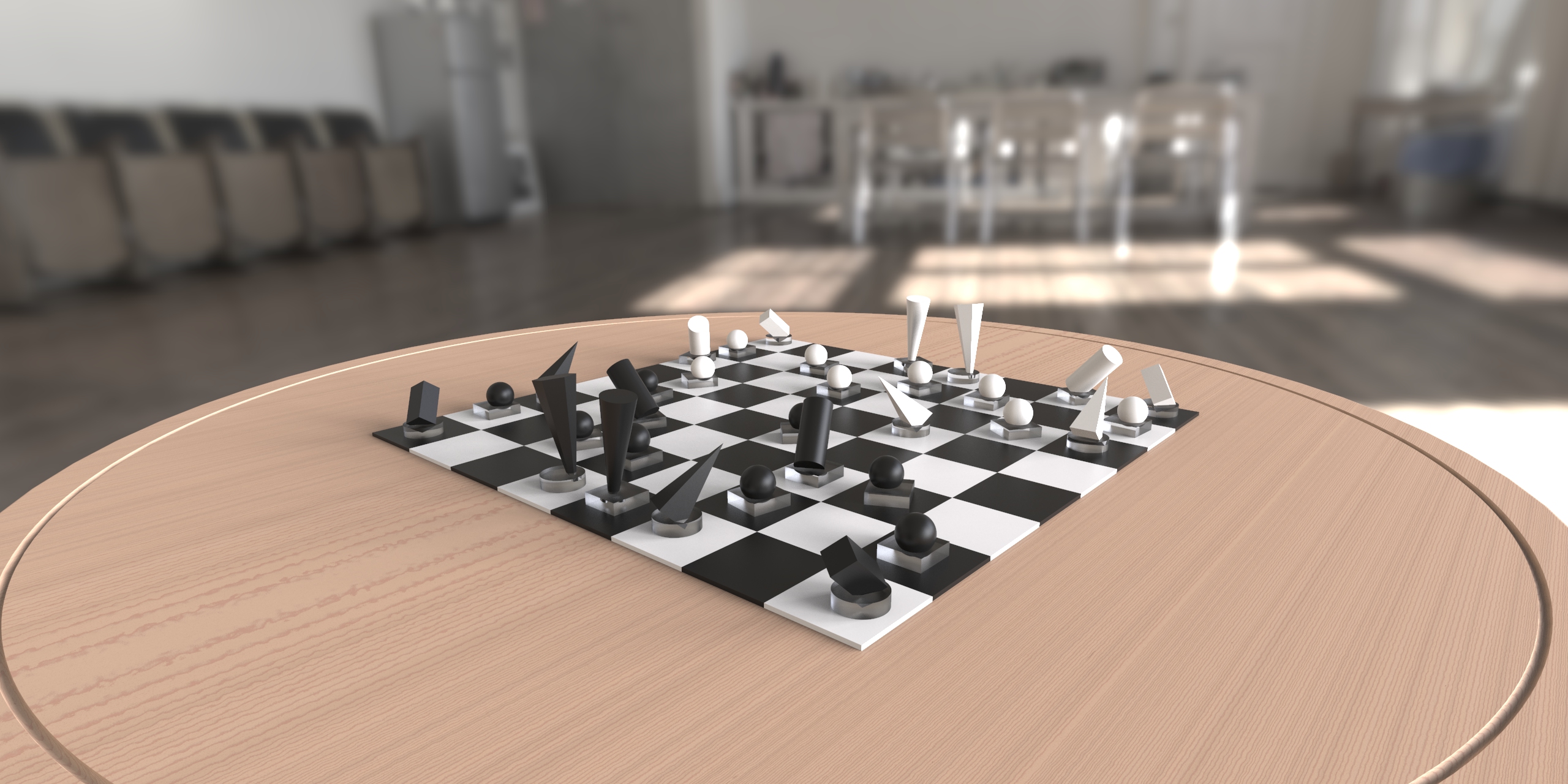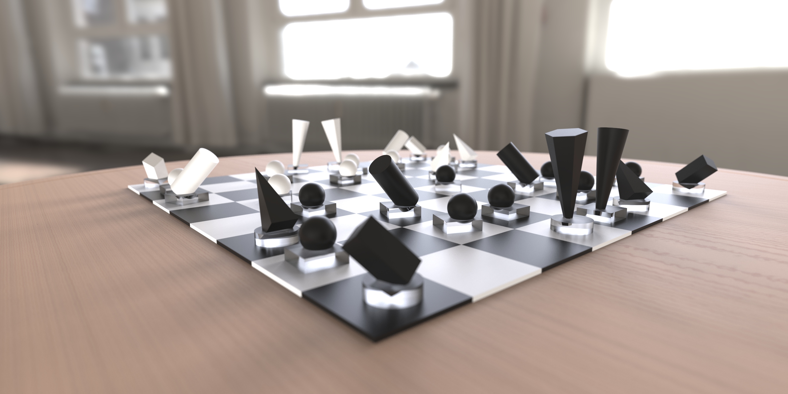 Geometrické řešení šachových figurek, využívající tvarového a materiálového kontrastu jako svých vedoucích estetických prvků. Vedoucí myšlenkou samotného designu je sblížení věkových skupin v rámci volnočasových aktivit za pomocí kombinace svěží formy a obecně známé hry.