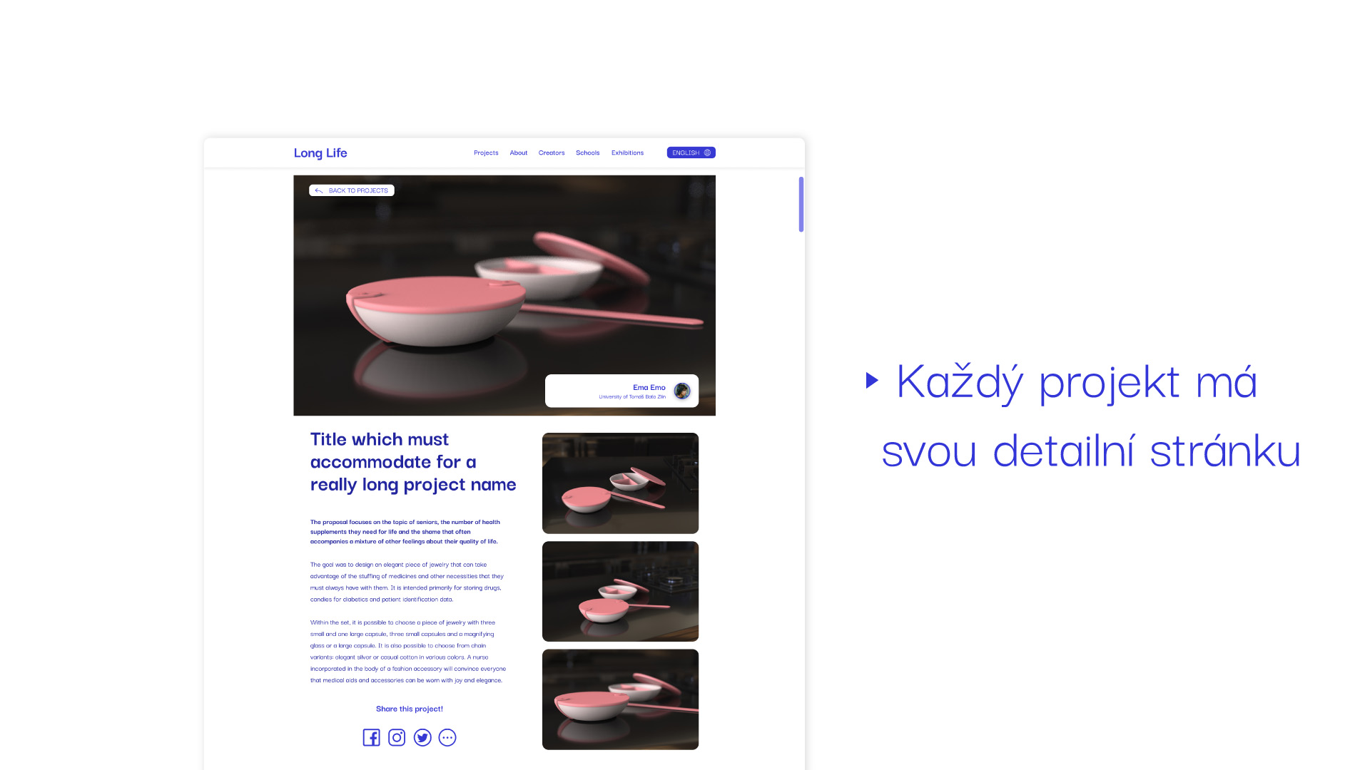 Barevnost webu je omezena ve prospěch samotných studentských projektů, které budou lépe vynikat svou vlastní barevností.