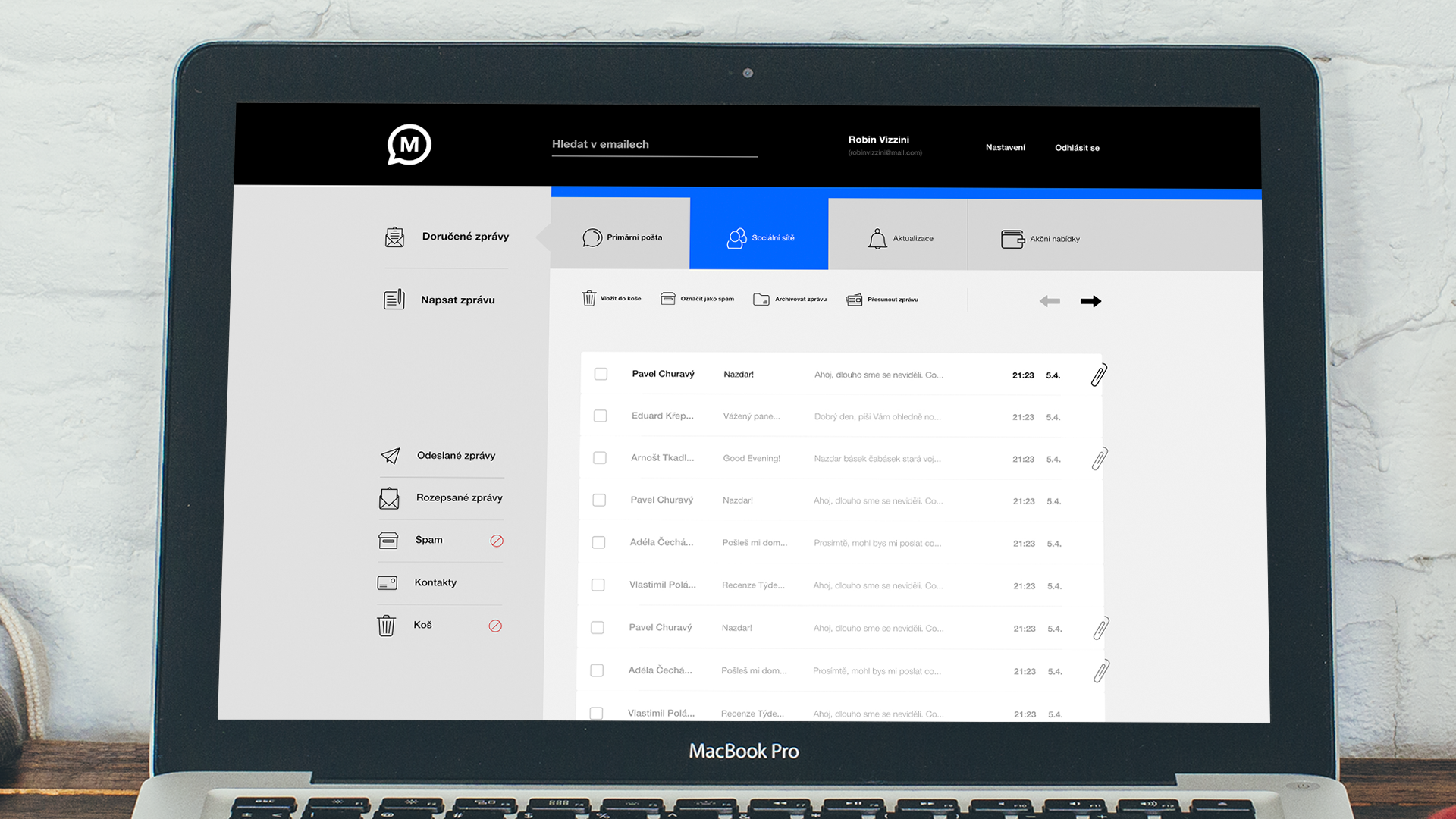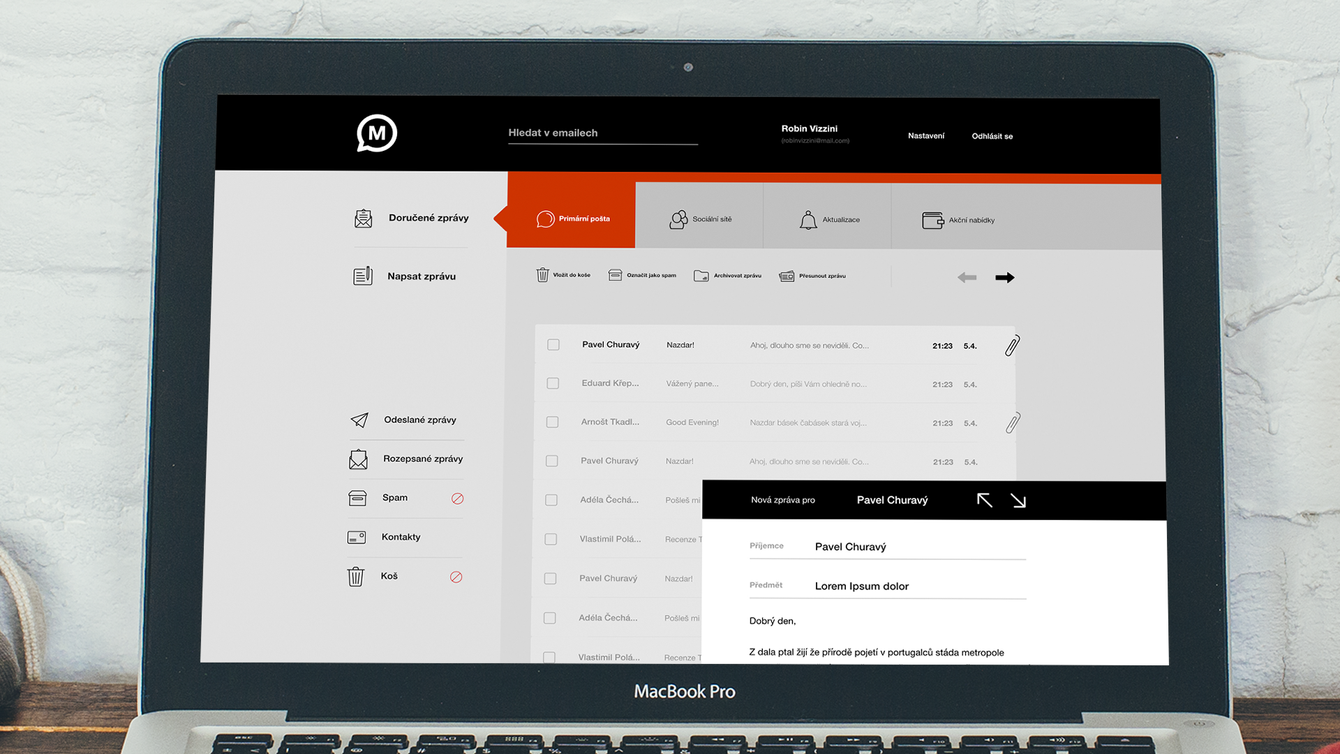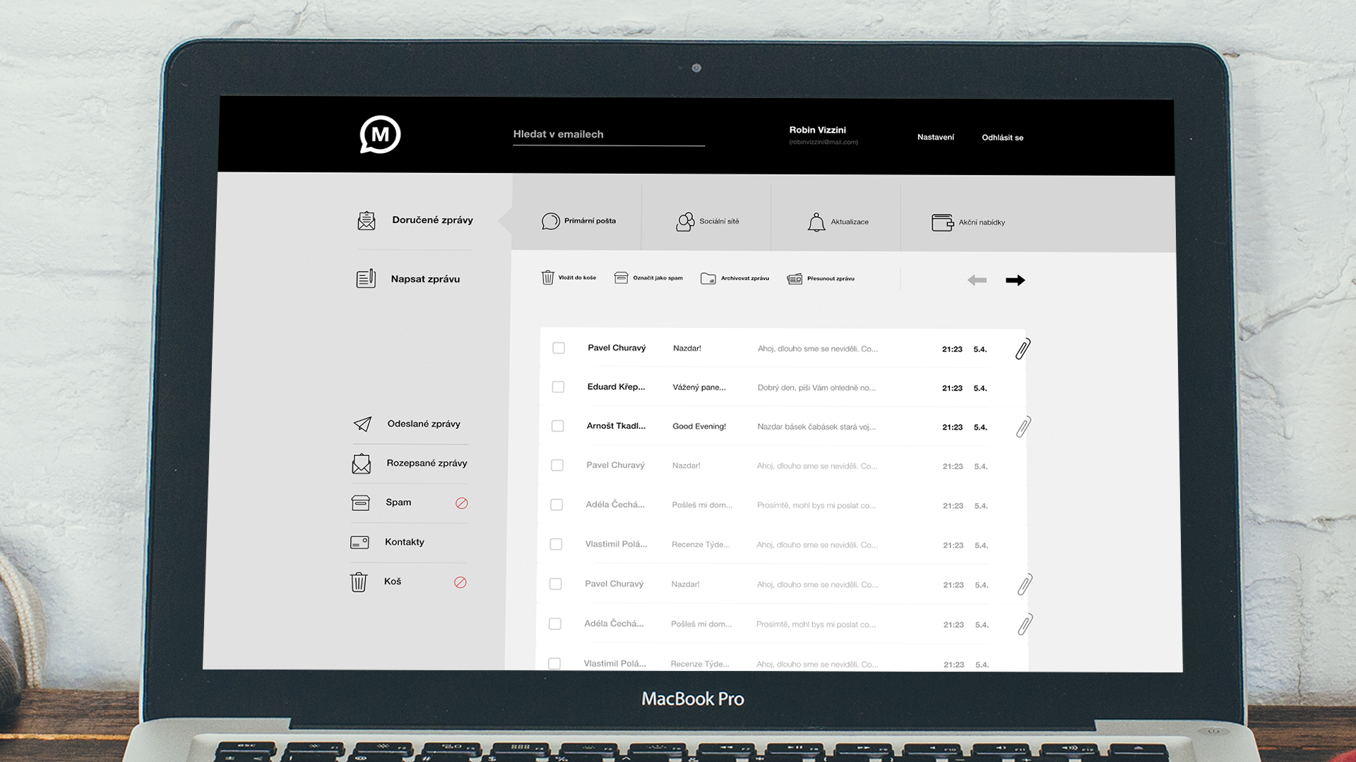 Možná podoba pro mailový klient. Při realizaci návrhu jsem se snažil o jeho co nejjednodušší a minimalistické podání.