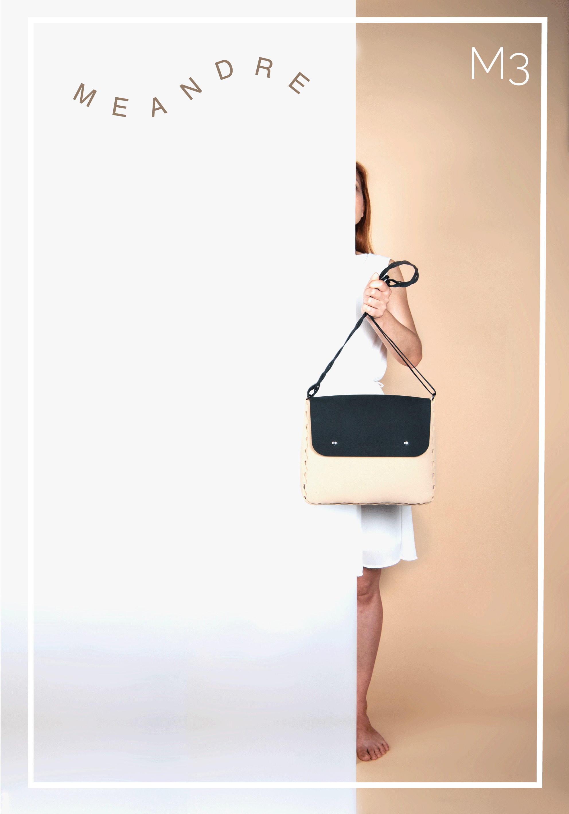 Celý koncept kabelek Meandre klade nároky na kvalitní designové zpracování, které podpoří praktické používání. Stejně dbá na profesionální, ale jednoduché sestavení. To umožňuje zámkový systém, který vytváří jemnou, ale esteticky zajímavou linku na hraně kabelky.