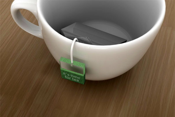 horúcej vody ešte zlepšuje efekt vzlínavosti. Voda po šnúrke (materiálovo navrhnutej s ohľadom na vzlínavosť vody) prechádza až do nádoby (etikety), naplnenej práškom, ktorý po styku s vodou nadobudne ešte zelenšiu farbu. Zelená farba signalizuje ideálny čas na čaj.