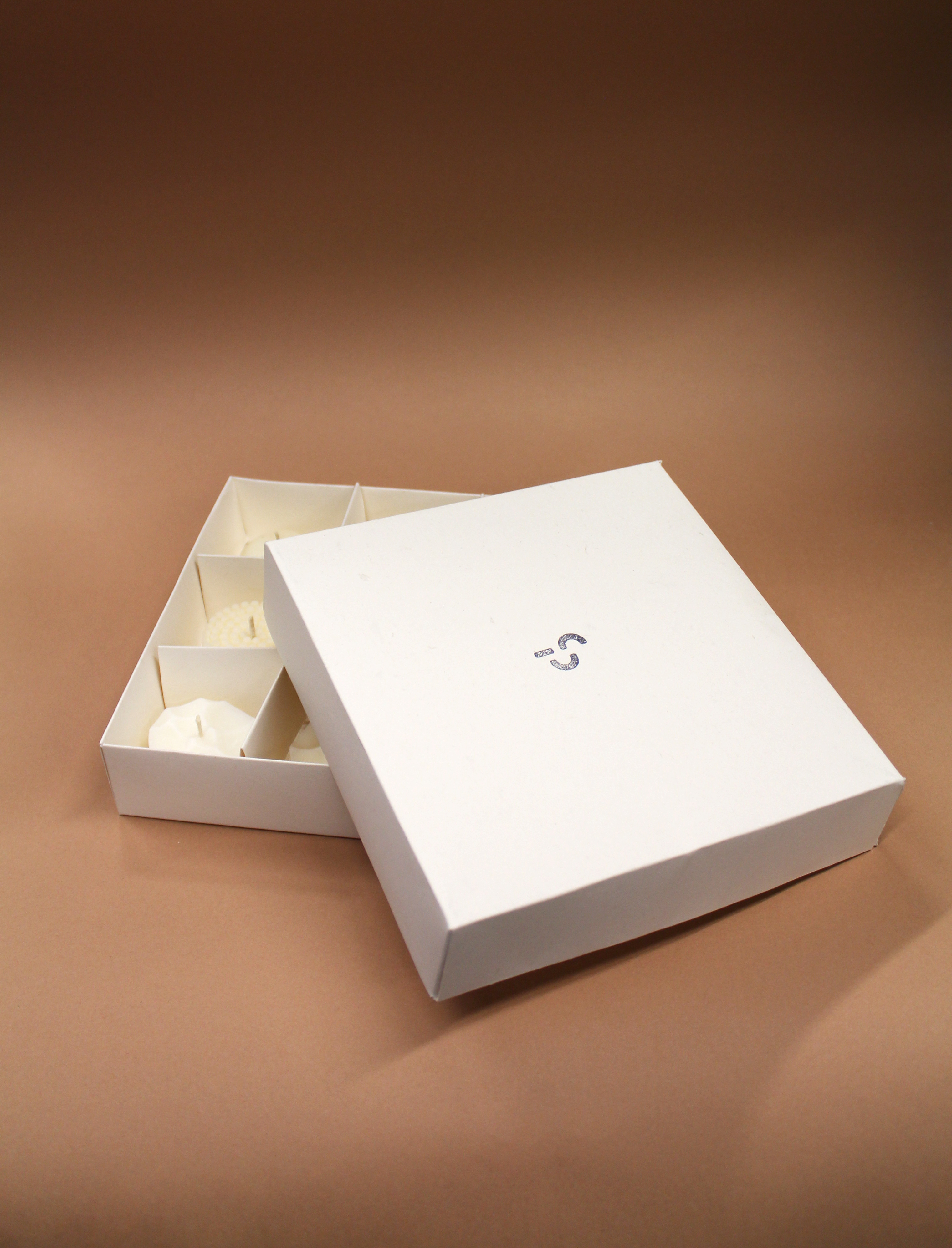 Candies box - téma bakalárskej práce, ktorej snahou je vytvoriť ekologické a zdravotne nezávadné čajové sviečky. Sviečky sú špecifické svojimi tvarmi a vôňami. Každú vôňu reprezentuje iný tvar sviečky, tak isto ako každá príchuť pralinky v bonboniére má svoj špecifický tvar. Tvar jednotlivých sviečok má taktiež za úlohu odrážať charakter ich vône (sladká, citrusová, kyslá…). Celé riešenie produktu je doplnené balením v podobe krabičky s vlastnou grafikou. Candies box vám umožní šíriť radosť, pohodu a sladké vône bonboniéry bez odpadu a zbytočných kíl navyše.