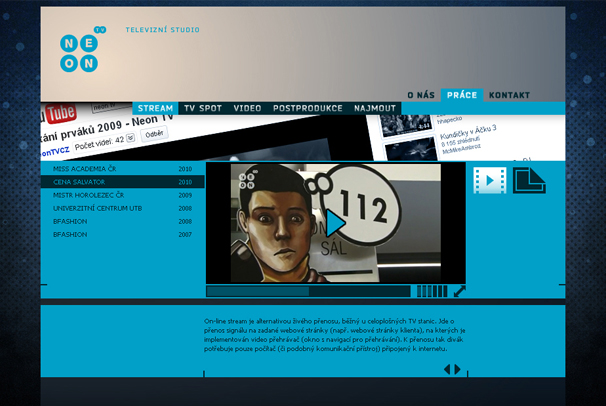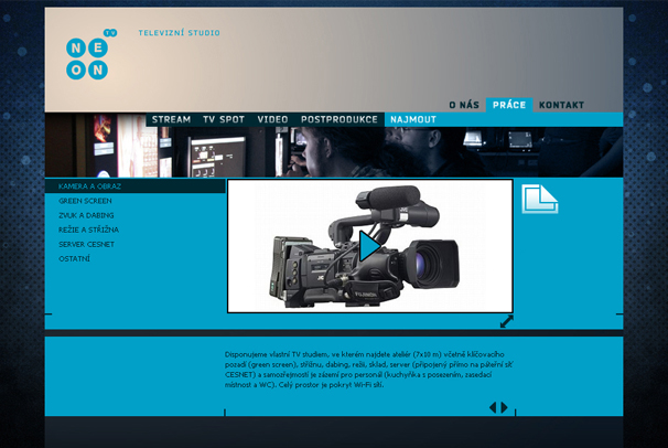 Návrh produktové microsite je založen na prodeji služeb, které toto kreativní televizní studio nabízí. Mezi ně mimo jiné řadí živé přenosy, videozáznamy, propagační videa, možnost pronajatí studia s technikou a další práce spojené s televizním prostředím.