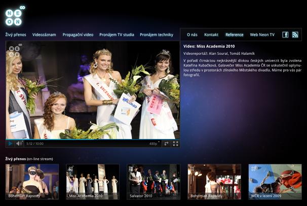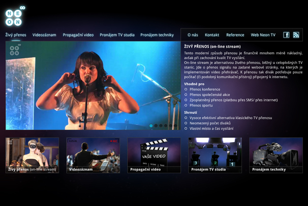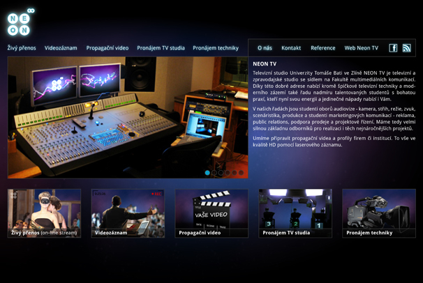 Microsite služeb nabízených televizním studiem Univerzity Tomáše Bati ve Zlíně NEON TV.