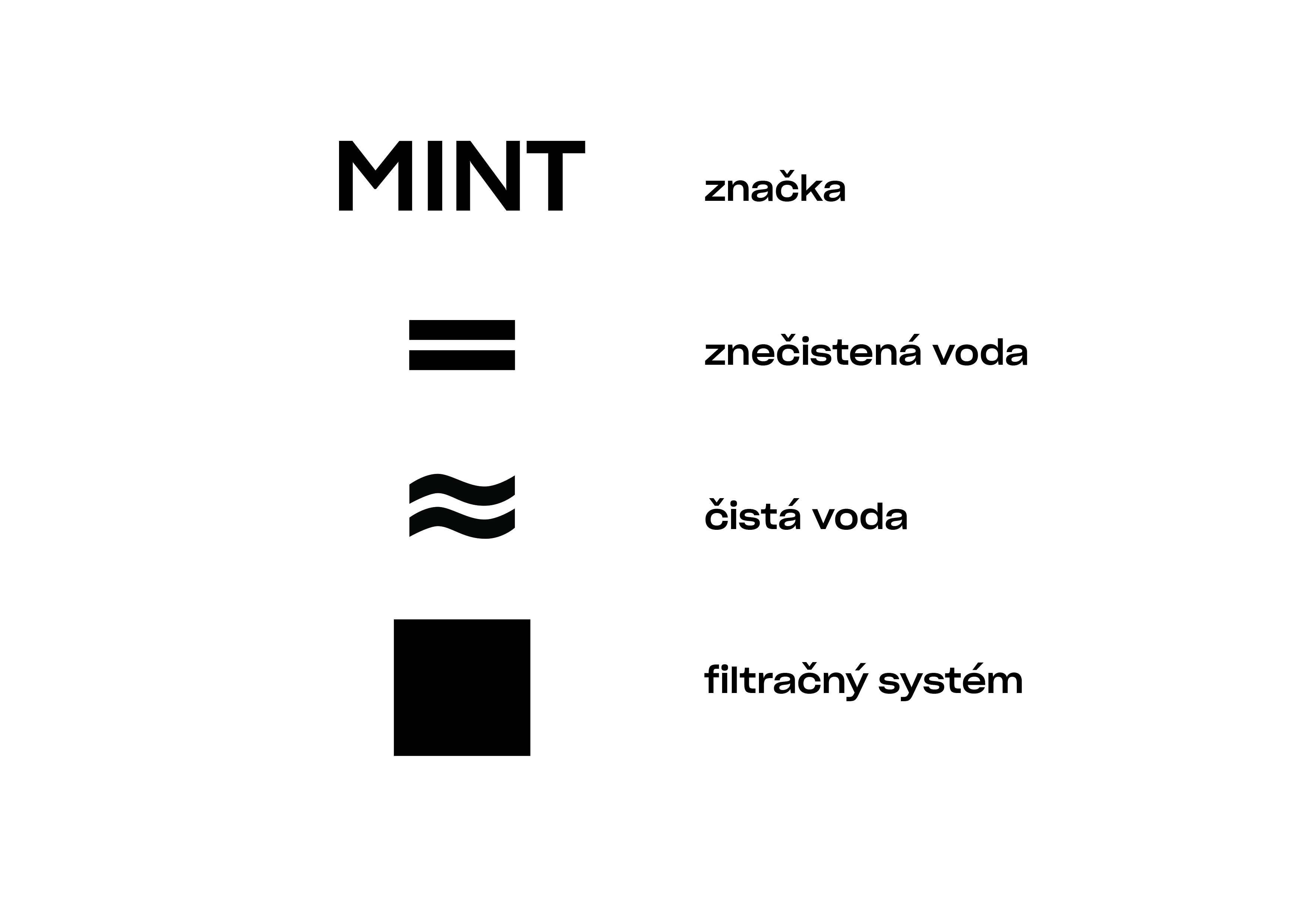 MINT– je český, inžiniersko-technologický start-up ktorý aplikuje inteligentné membránové technológie pre zaistenie kvality vody, zdravia a ochranu životného prostredia. Našou úlohou bolo vytvoriť logo ktoré by mohli používať na označovanie svojich produktov čož sú veľké filtračné jednotky ktoré čistia vodu. Logo ktoré som nevrhla je poskladané z jednotlivých prvkov, ktoré súvisia s filtráciou vody. Obdĺžnik v ktorom je logotyp zasadený ma symbolizovať filter, zvlnene čiary majú symbolizovať čistú vodu a rovné čiary znečistenú vodu a hlavným prvkom je samotný názov MINT. Logo by sa mohlo používať aj s prídavným celým názvom Membráne Inteligent Technology ale aj samostatne. V ukážkach je samostatné logo doplnené aj o názvy ako e-book, e-care a IQ, ktoré start-up už používa pri prezentácii portfólia služieb. Ďalej sú tam použité ukážky kde je logo aplikované napr. na vizitke obchodného riaditeľa, veste pracovníka z montáže či na kontajnery v ktorom sú tieto filtračné jednotky distribuované.