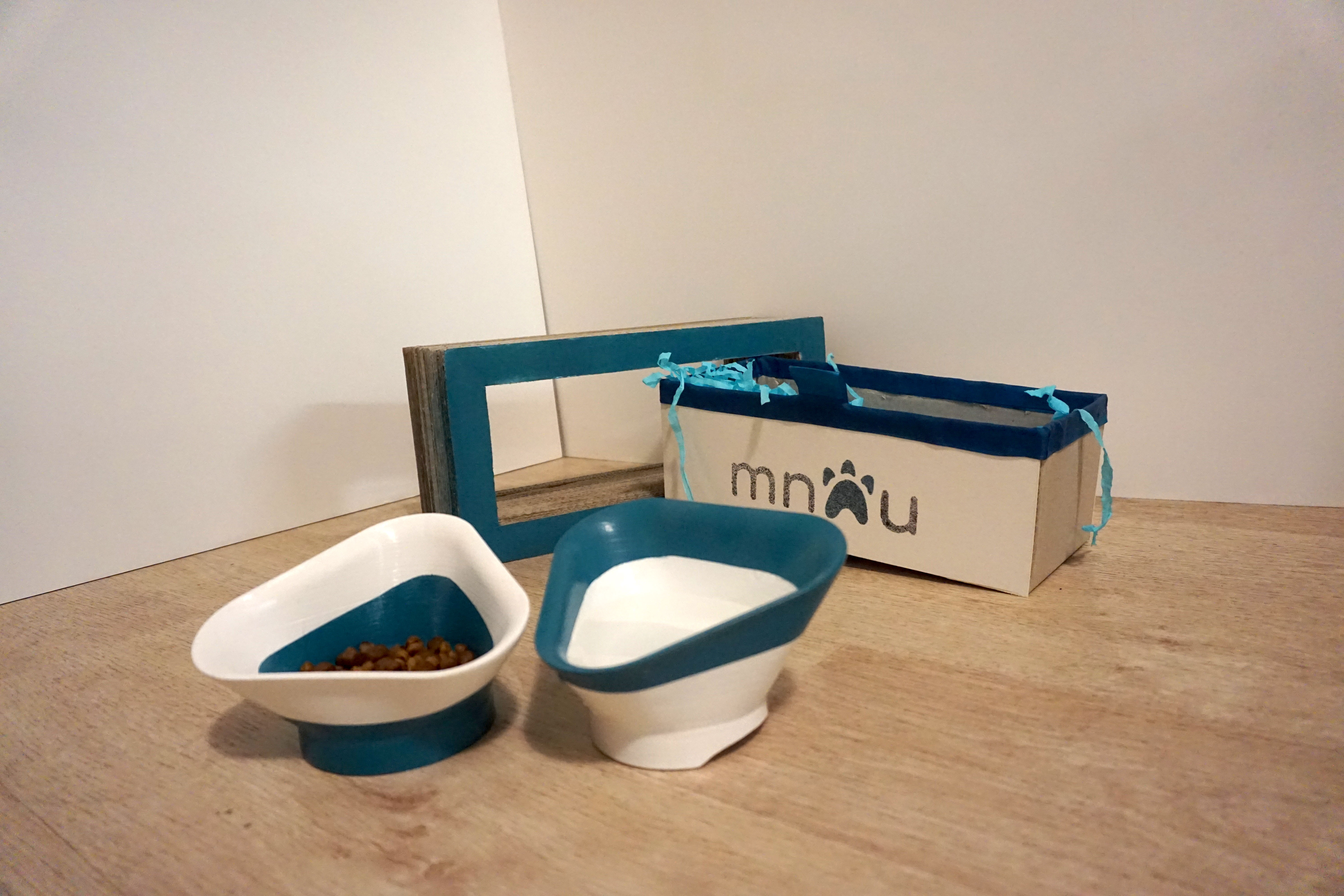 MNAU kočičí misky vytvořeny v závislosti na tvaru kočičí hlavy, tak aby kočky jakéhokoli vzrůstu měly pohodlnou dostupnost ke konzumaci své potravy.