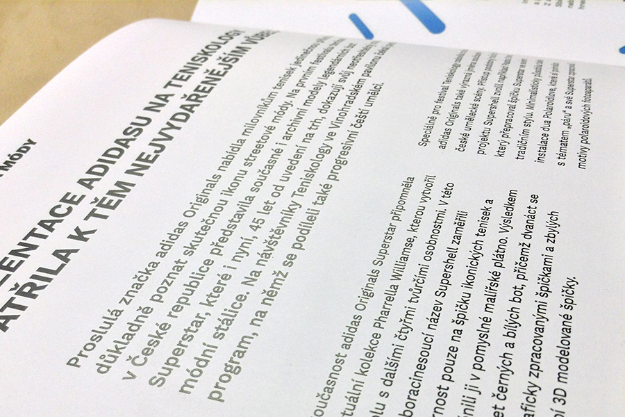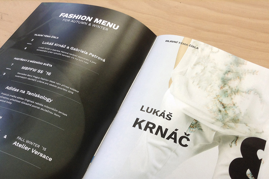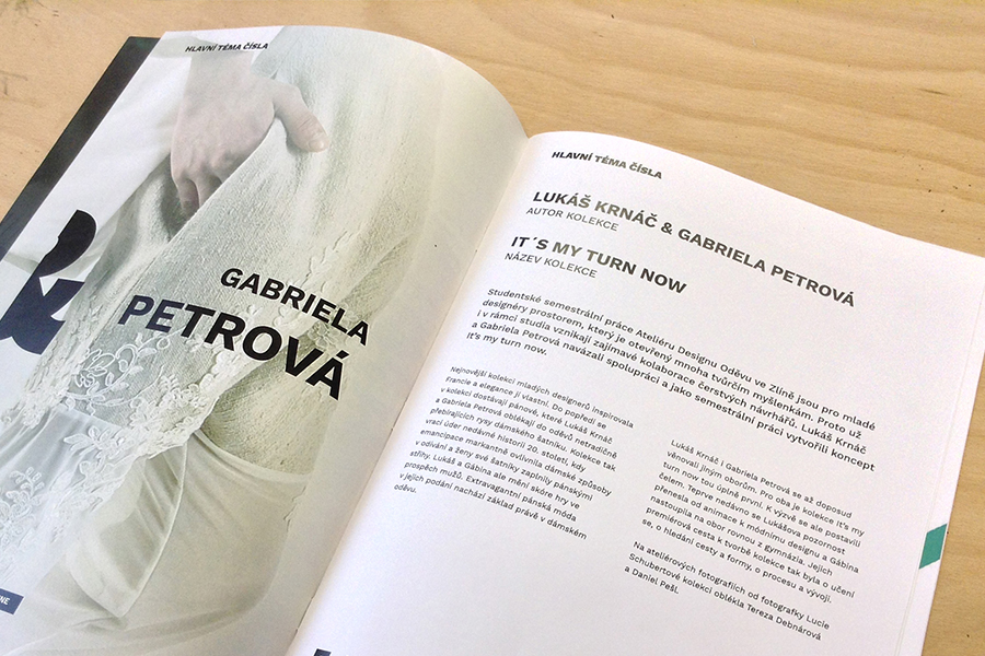 Jako náplň časopisu jsem zvolil postřehy ze světa módy. Při tvorbě časopisu jsem se více jak na sazbu zaměřil na sladění textu a fotografií, které jsou klíčové pro módní časopisy. Také jsem použil pro celý časopis jeden bezserifový font bohatý v řezech, což pro módní časopisy není zcela typické.