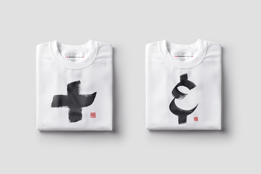 Návrh motívov tričiek pre ateliér Digitální design, ktoré sú inšpirované čínskou štetcovou kaligrafiou. Motívy znázorňujú rôzne podoby písaného ampersandu.